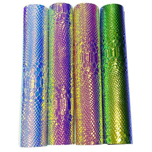 Unleash your creativity with our Iridescent Holographic Snake Skin Embossed Faux Leather Sheet. Ideal for a variety of crafting projects, this exceptional fabric offers a unique blend of durability and aesthetic appeal, ensuring your creations stand out from the crowd.