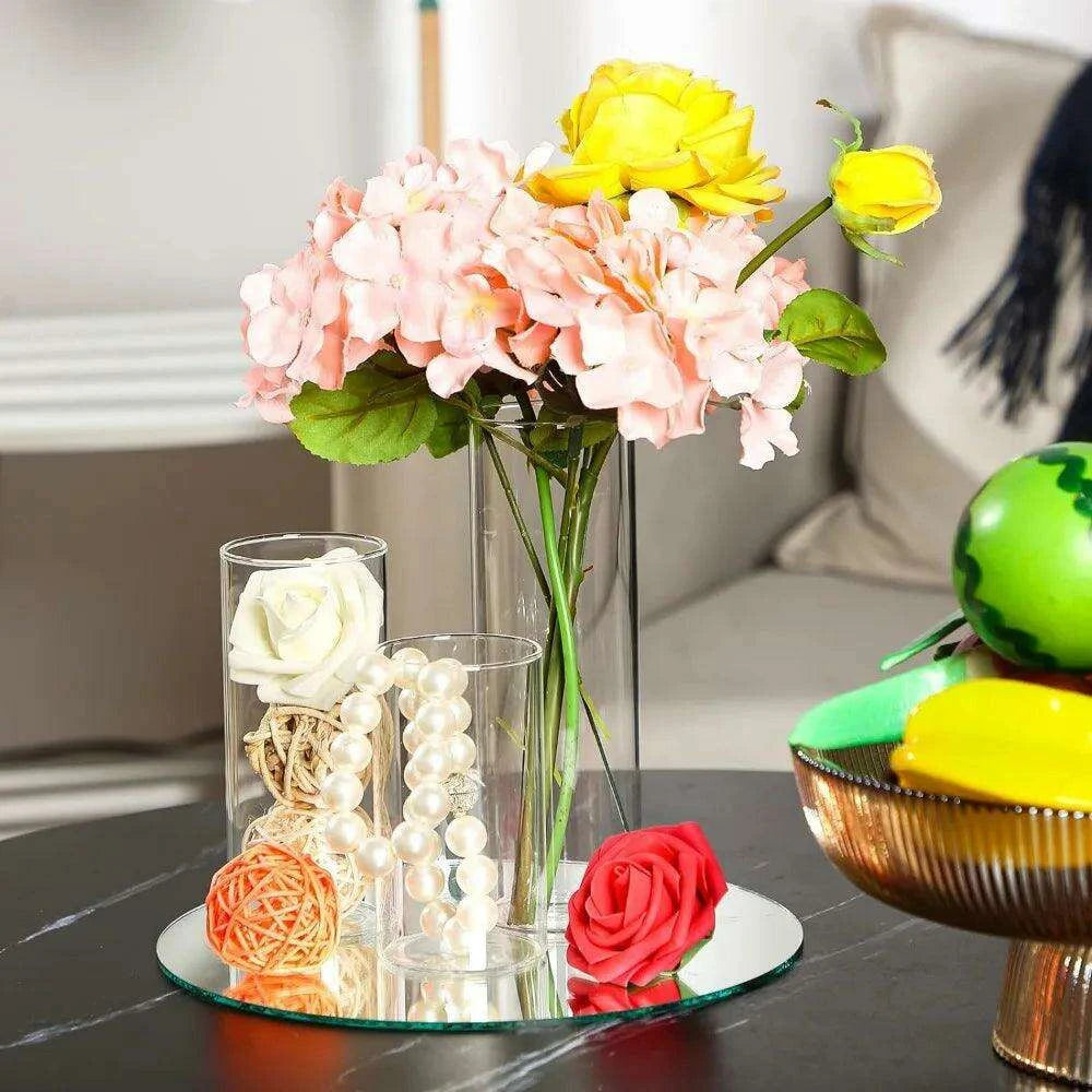 - Comprehensive Package: This set includes 36 clear glass cylinder vases and 12 round mirror trays to suit all your decorative needs.