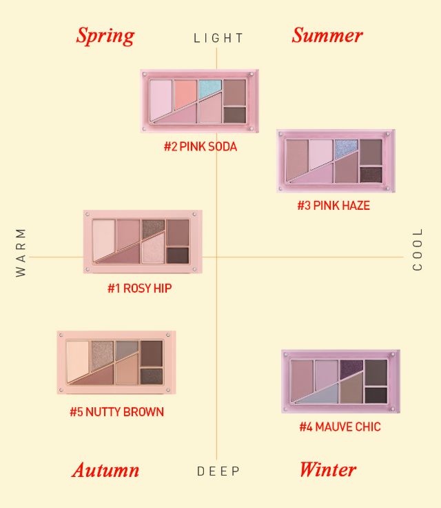 Discover the 3CE Layer It All Eyeshadow Palette—a five-color collection that delivers soft, silky texture and multidimensional payoff. Each shade glides on with ease, offering a subtle wash of color that deepens beautifully as you layer. The palette blends glittery-matte and satin-finish shades for a luminous look that stays smooth from first swipe to final blend.