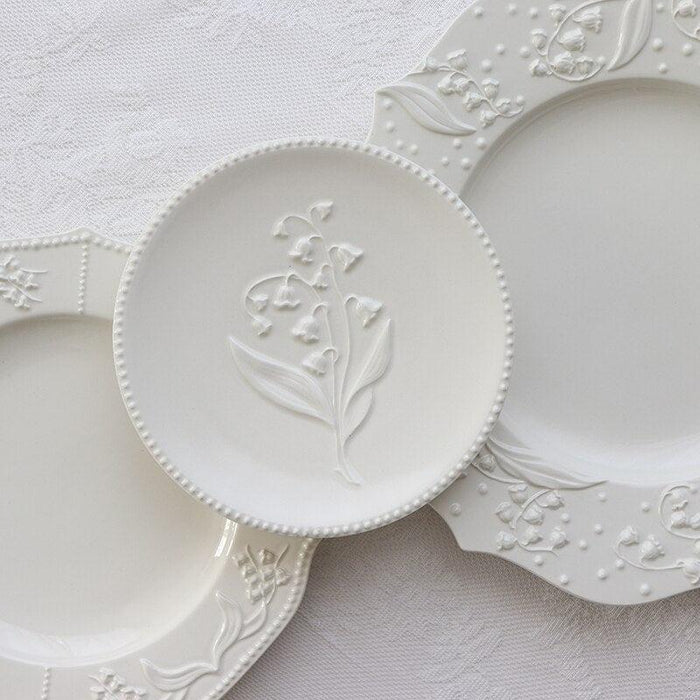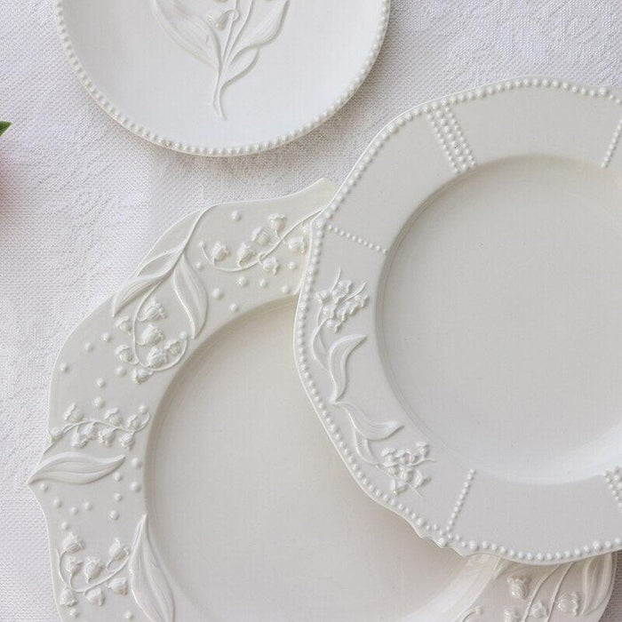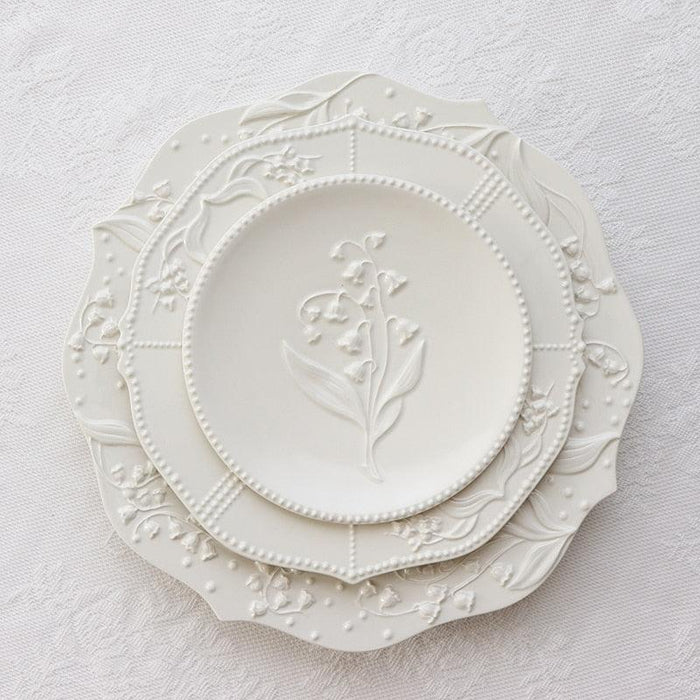 Elevate your dining experience with our Lily Valley Relief Tableware that blends elegance and versatility. The sophisticated Lily Valley relief design adds charm to every meal, making these plates a perfect addition to your table.
