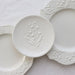 To maintain the beauty of these porcelain plates, hand wash with a gentle dish soap. Avoid abrasive sponges or harsh cleaning agents to preserve the intricate relief design.