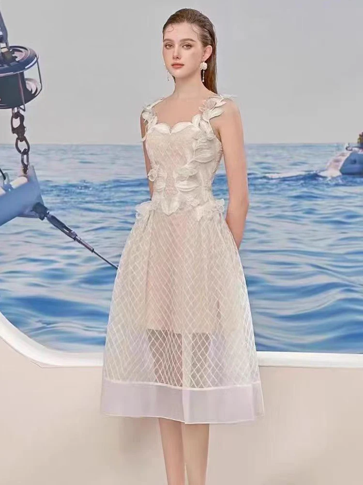 Step into the spotlight with the Elegant Dress, a stunning combination of sophistication and modern style. Perfectly designed for the summer of 2024, this dress showcases a beautiful 3D flower slip and exquisite gauze patchwork, making it an ideal choice for evening parties and special occasions.
