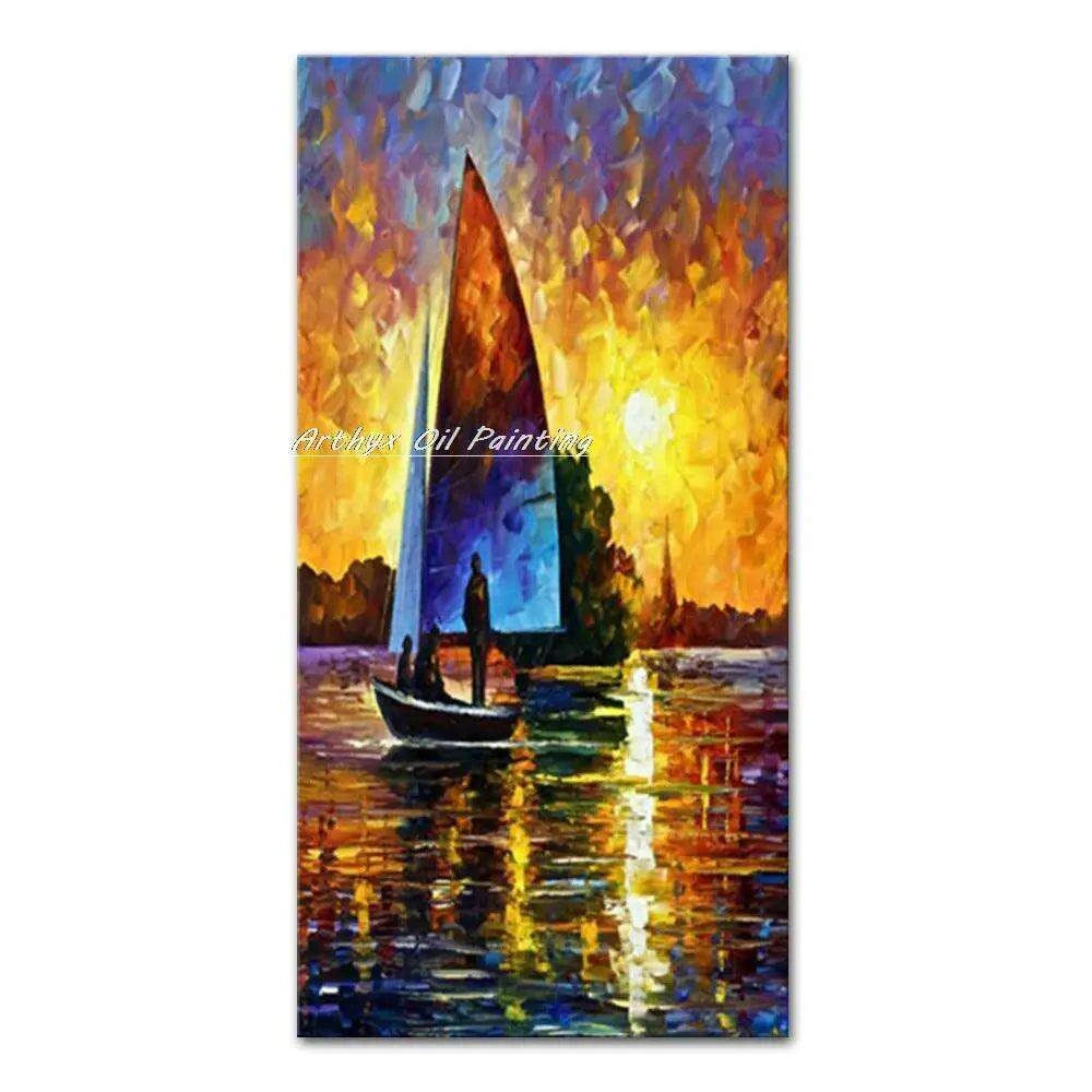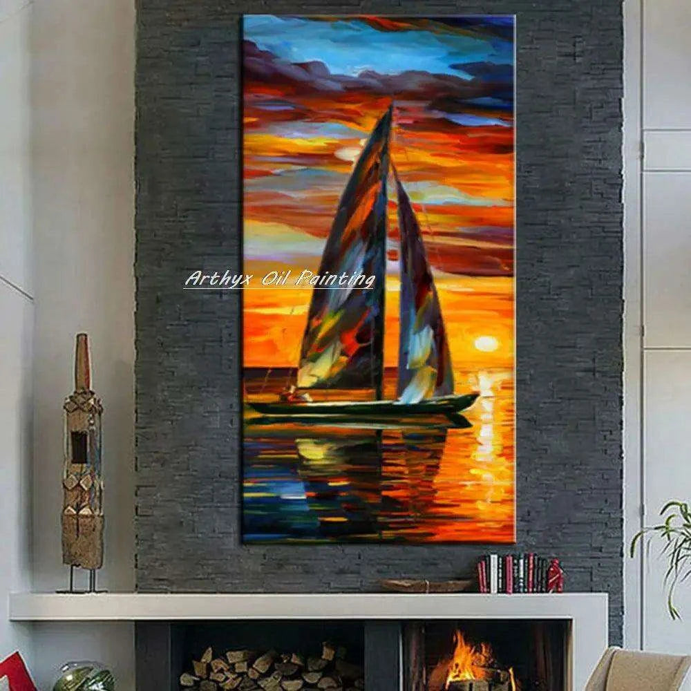 Elevate Your Living Space with Large Handcrafted Abstract Boat Oil Painting