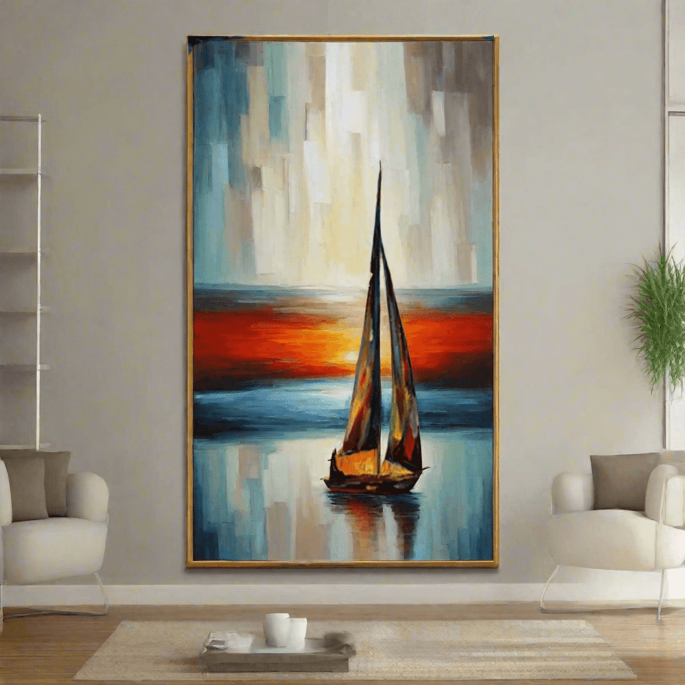 Abstract Boat Oil Painting: Large Handcrafted Artwork to Elevate Your Home's Aesthetic