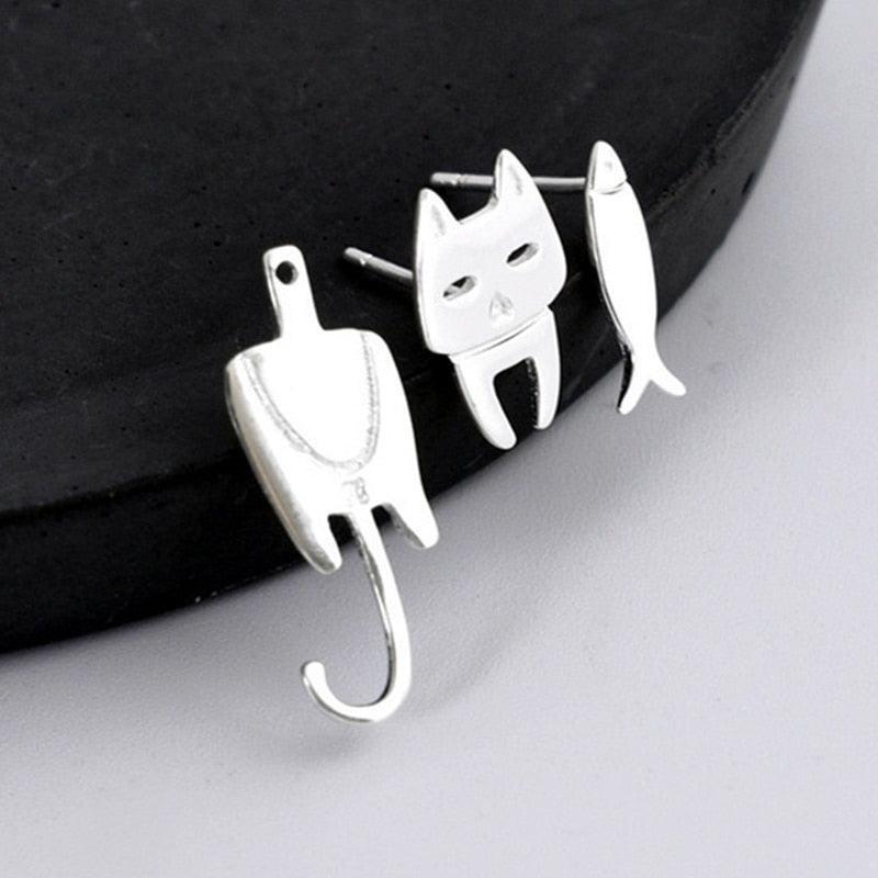 Adorable Sterling Silver Catfish Dangle Earrings for Feline Enthusiasts