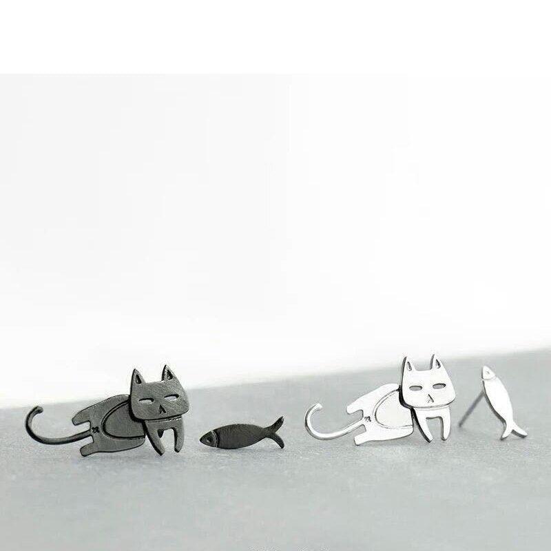 Charming Sterling Silver Catfish Drop Earrings for Cat Lovers