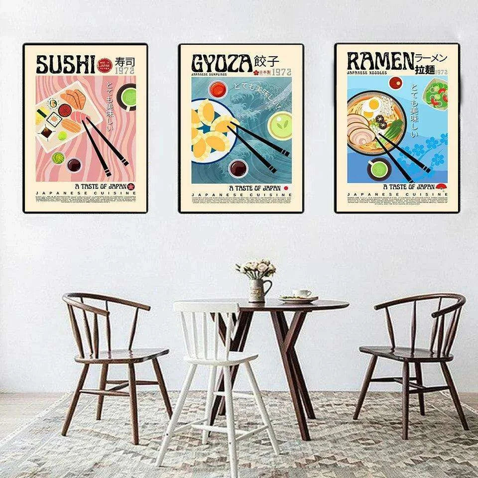 Asian Culinary Wall Art: Elegant Depictions of Ramen, Sushi, and Dumplings for a Chic Kitchen
