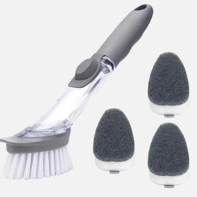 • Convenient All-in-One Design: This versatile gadget combines scrubbing power with liquid dispensing functionality, streamlining your kitchen cleaning tasks.
