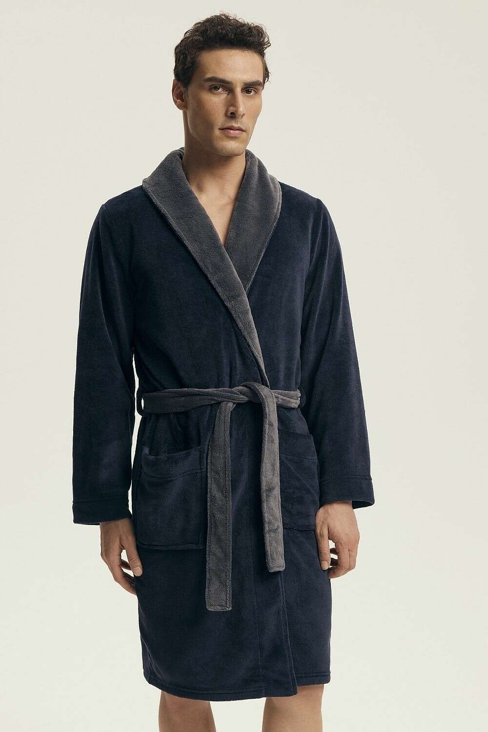 Men’s Knee-Length Bathrobe with Pockets – Model 219797
