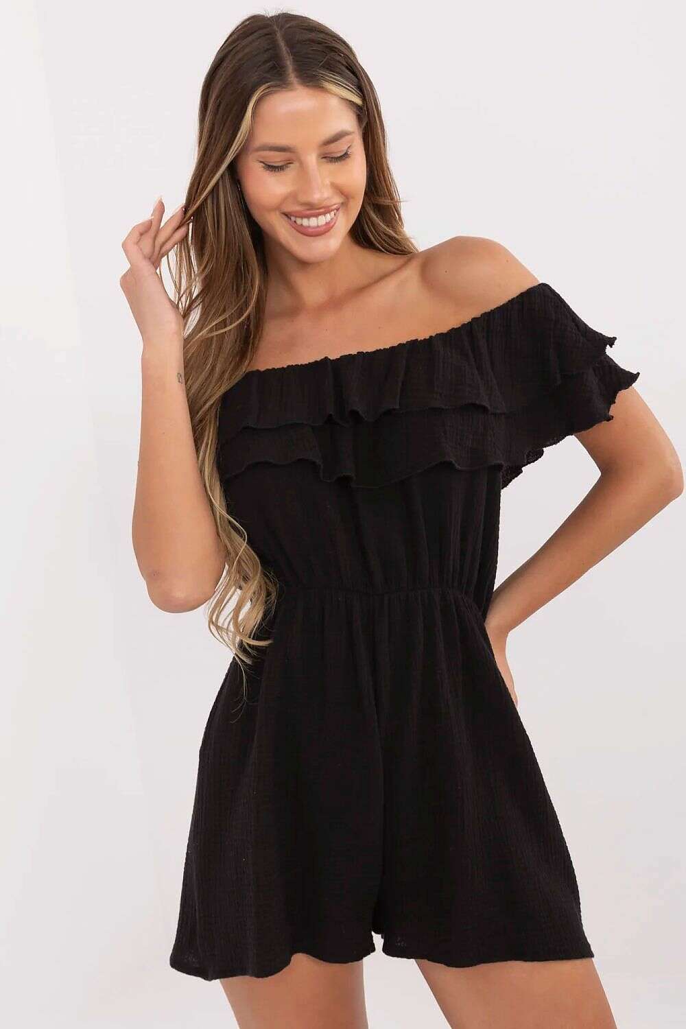 Black Lightweight Muslin Jumpsuit Off Shoulder Model 213850