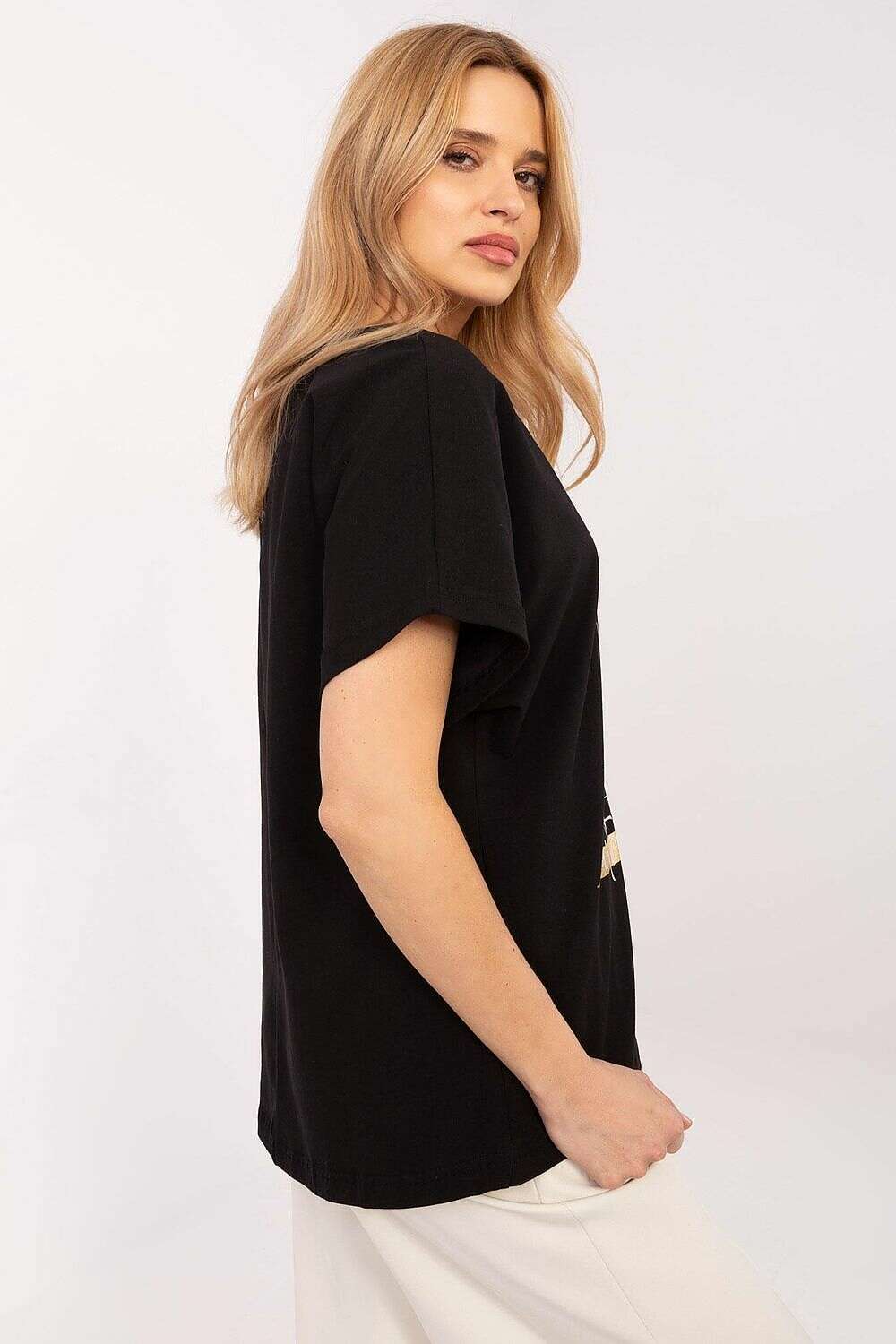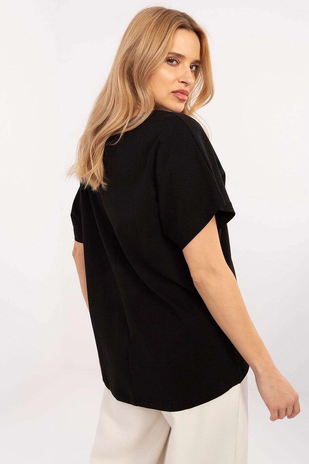 Loose and stylish oversize blouse, perfect for everyday wear. Made of soft cotton with a touch of elastane, it provides comfort and freedom of movement. A standard length model, with short sleeves and a classic round neckline, will work perfectly in casual stylings. The front is decorated with a striking flower print, enriched with subtle rhinestones, which add an elegant and feminine character to the blouse. It pairs well with jeans, leggings, or a skirt, creating a fashionable yet comfortable look.