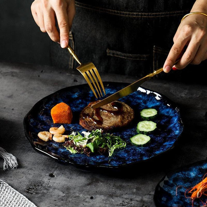 Elevate Your Dining Ambiance with Elegant Blue Ceramic Tableware Set - Perfect for Sophisticated Dining