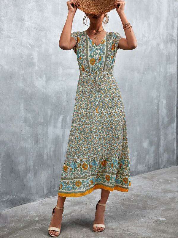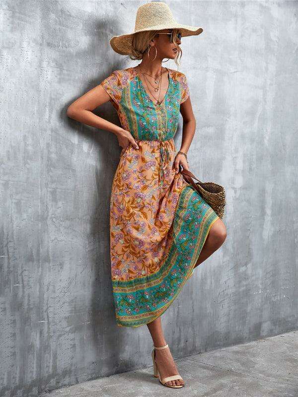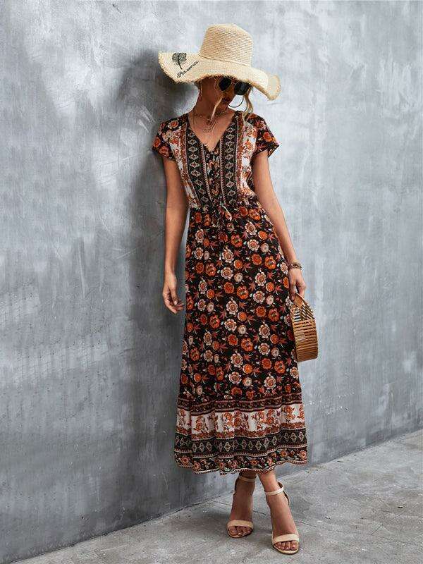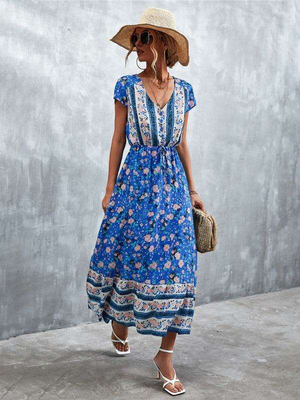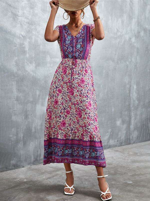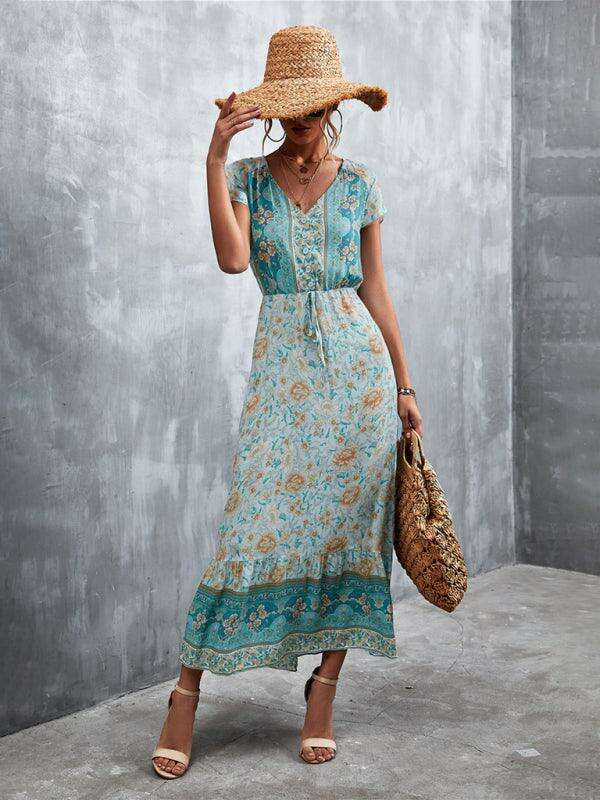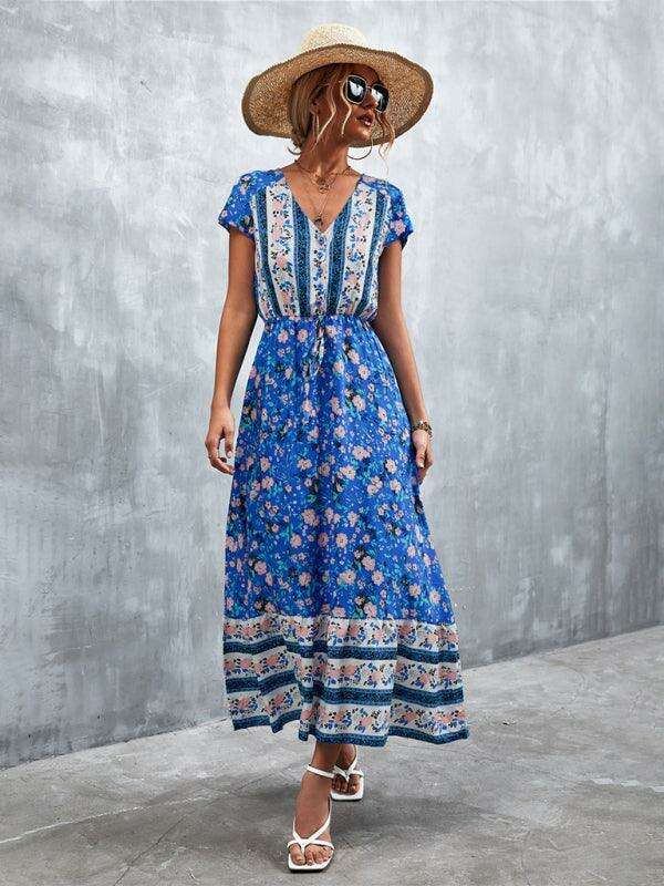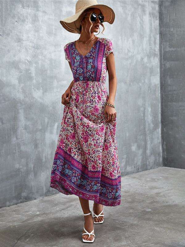 Step into summer with the Bohemian Charm Women's V-Neck Maxi Dress, a stunning piece that effortlessly combines style and comfort. Designed for the modern woman who loves to express her individuality, this dress is perfect for a variety of occasions.