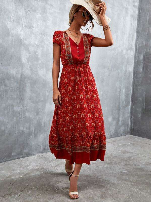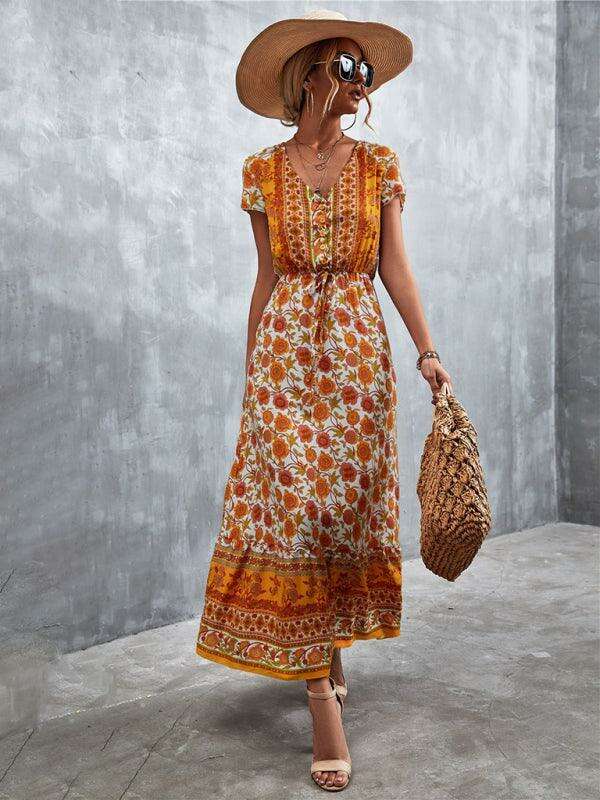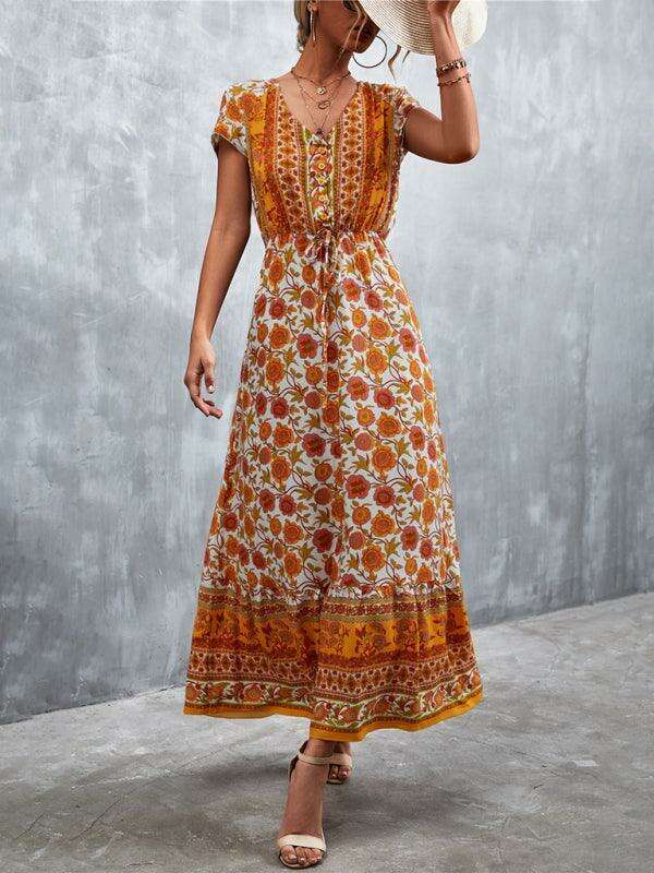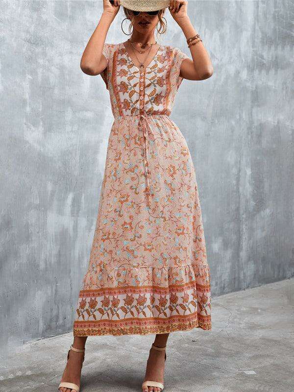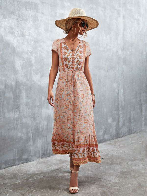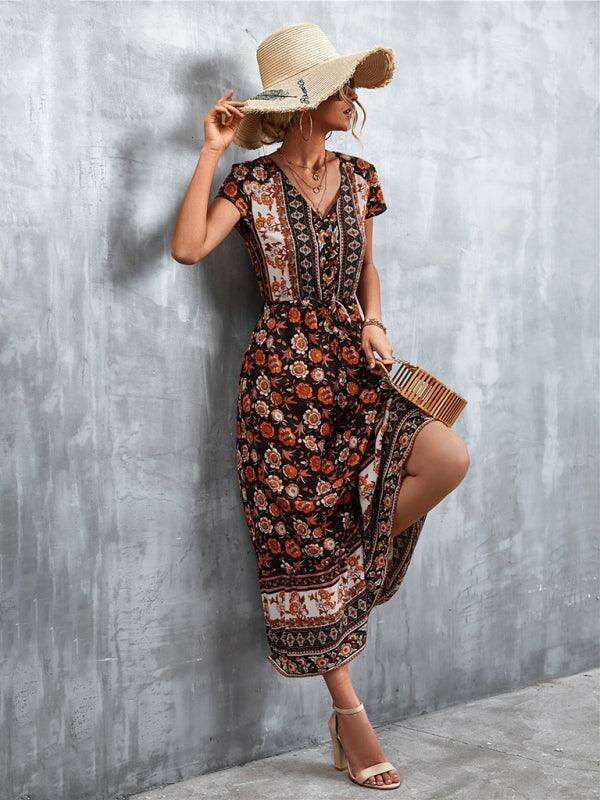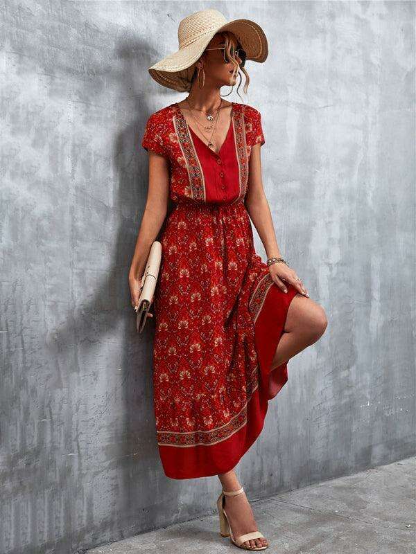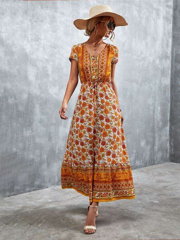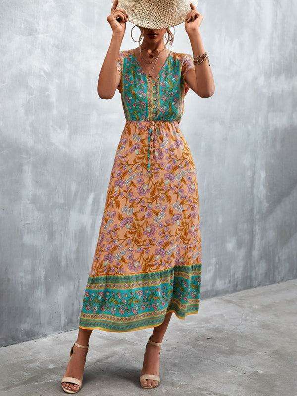 Step into summer with the Bohemian Charm Women's V-Neck Maxi Dress, a stunning piece that effortlessly combines style and comfort. Designed for the modern woman who loves to express her individuality, this dress is perfect for a variety of occasions.