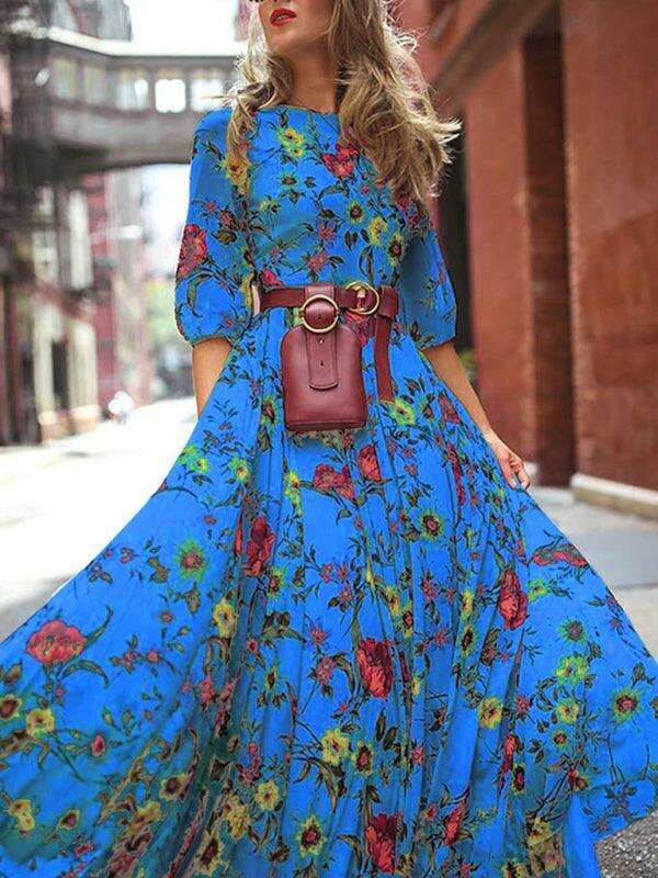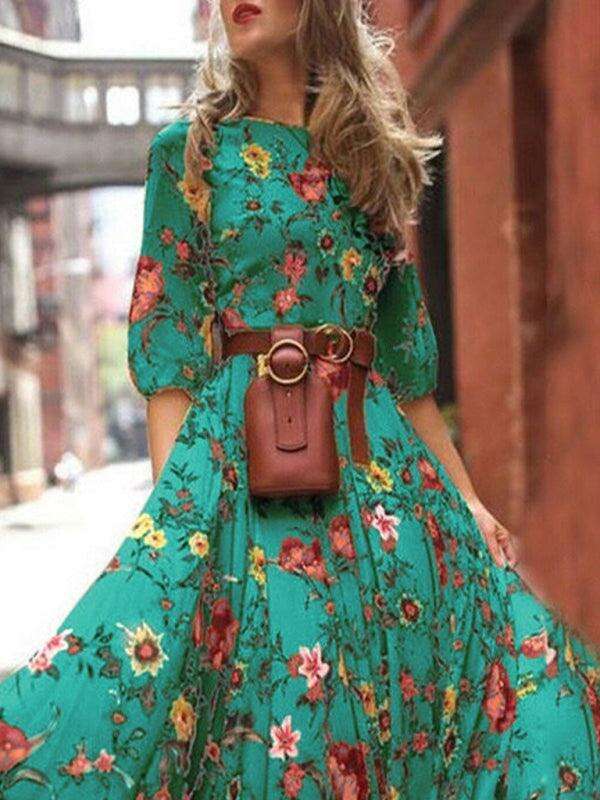 Vintage-Inspired Bohemian Floral Print Dress for All Seasons