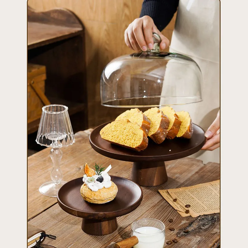 Elegant Acacia Wood Cake Stand with Shatterproof Acrylic Dome for Desserts, Fruits, and Charcuterie