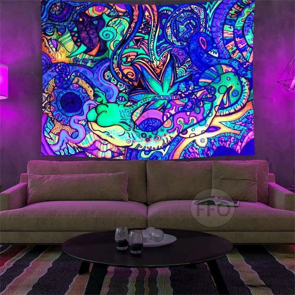 Celestial Dreamscape Astronaut Glow-in-the-Dark UV Tapestry - Captivating Home Decor Piece