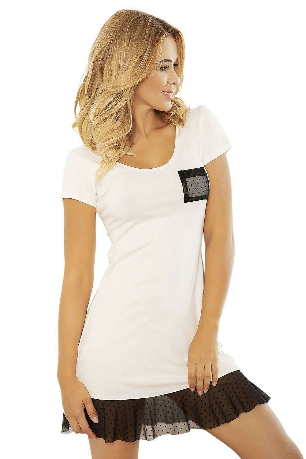 Charming Dotted Frill Viscose Chemise with Pocket Details