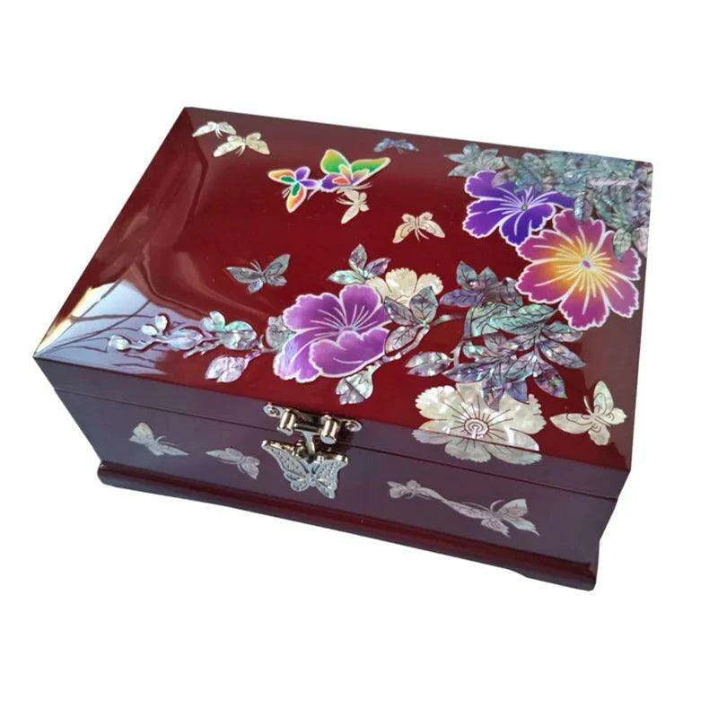 Charming Musical Jewelry Box with Pearl Inlays and Floral Elegance