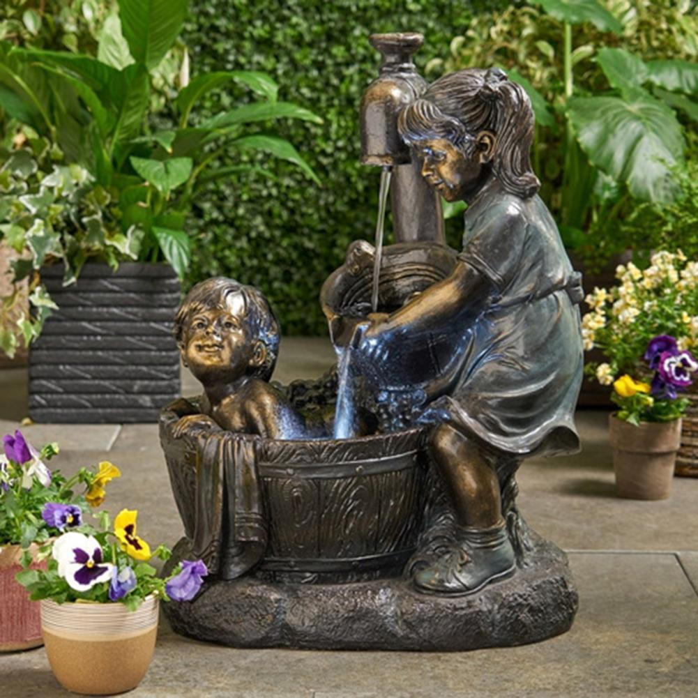 Vintage Kids Resin Outdoor Fountain Sculpture with Classic Charm