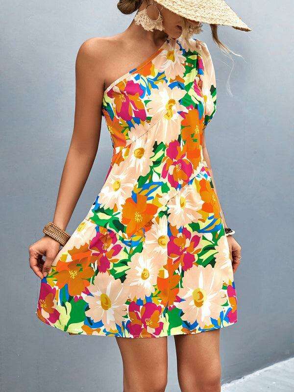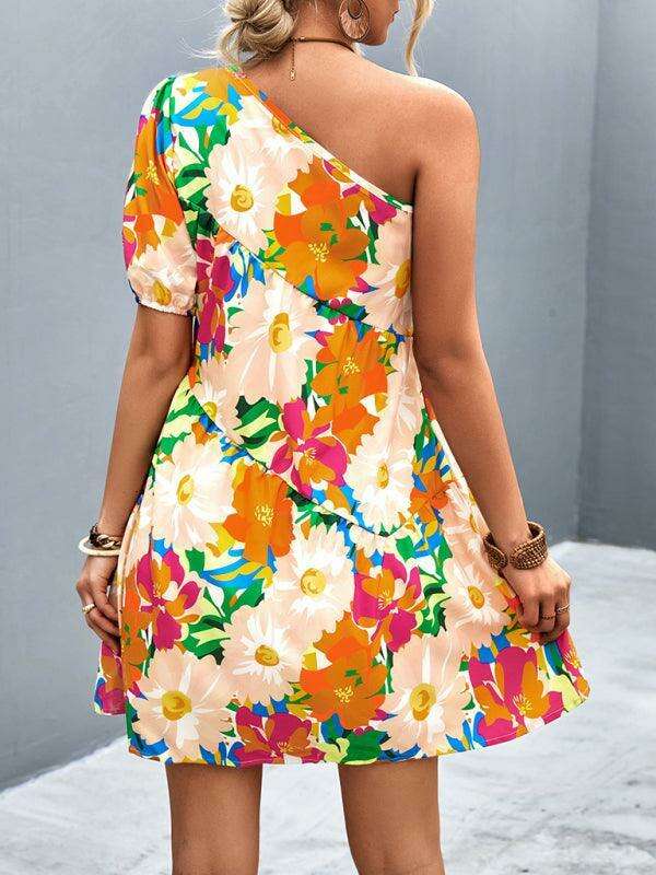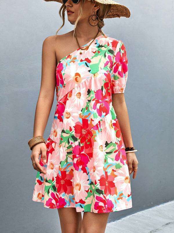 Elevate your style effortlessly with this graceful and elegant dress, perfect for a variety of spring and summer events. The charming floral print adds a delightful touch while the one-shoulder design highlights your fashion-forward sensibility.