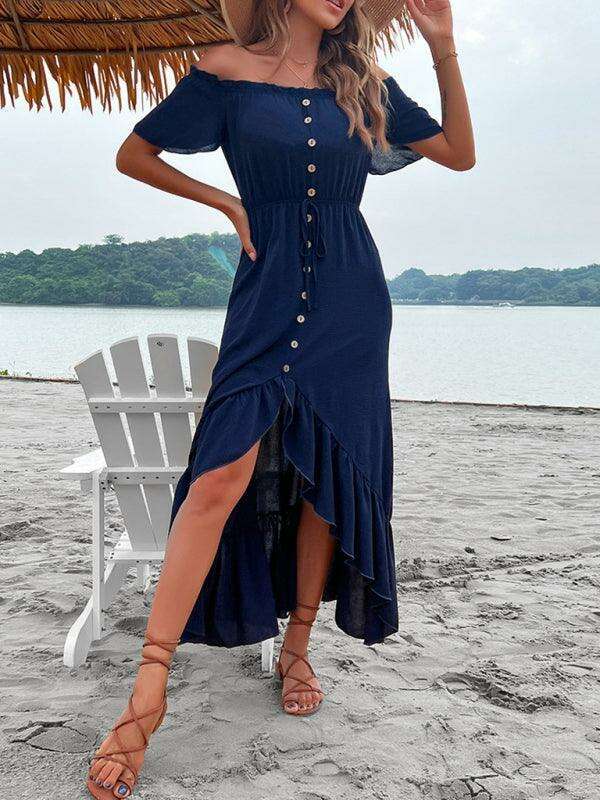 Choose the Chic Blue One Shoulder Ruffle Dress with Flowy Hem for a blend of classic style and modern flair. Make a lasting impression wherever you go!