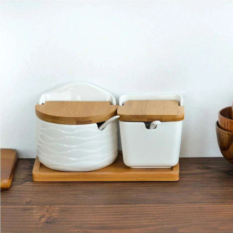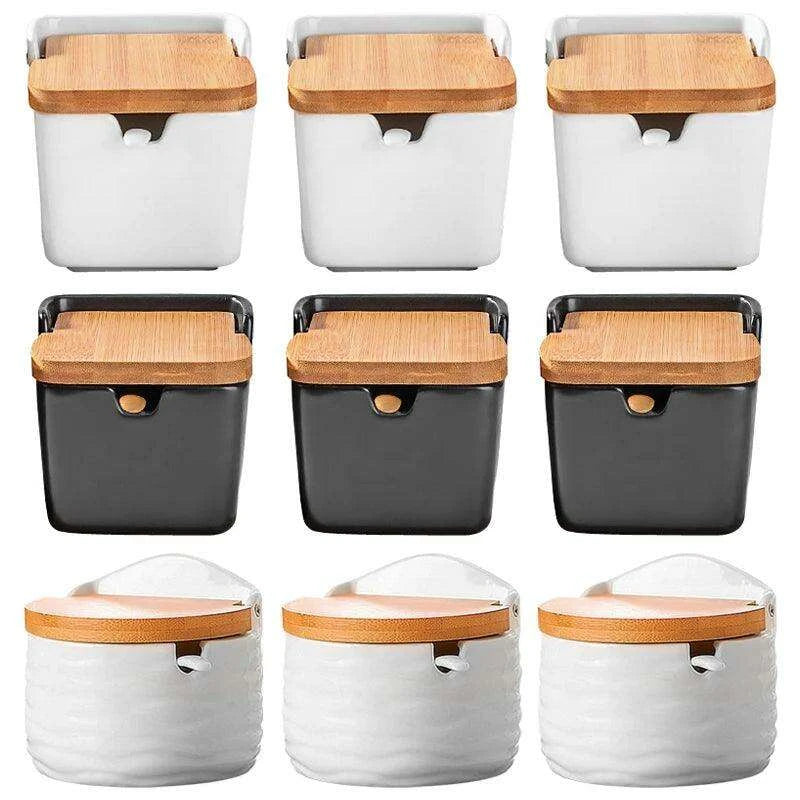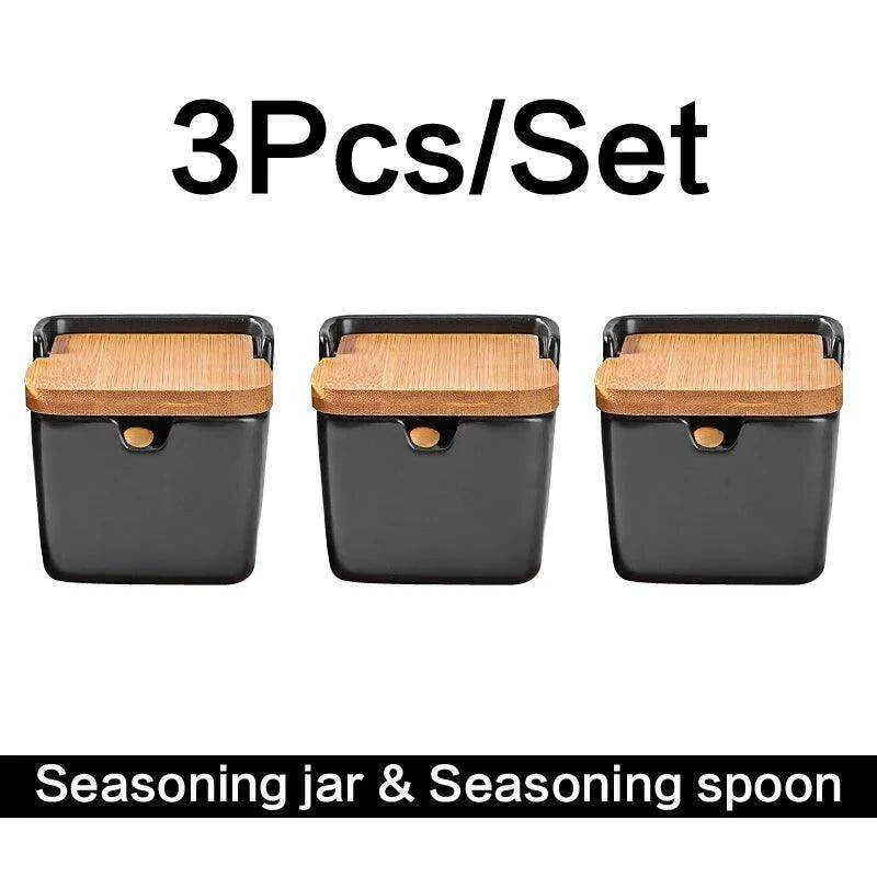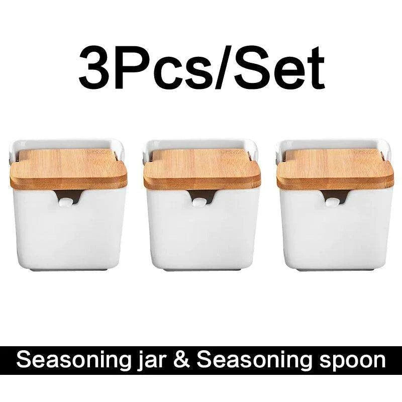 Chic European Ceramic Spice Storage Set with Salt Box & Condiment Organizer