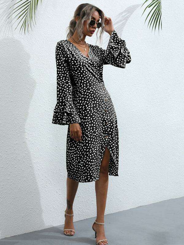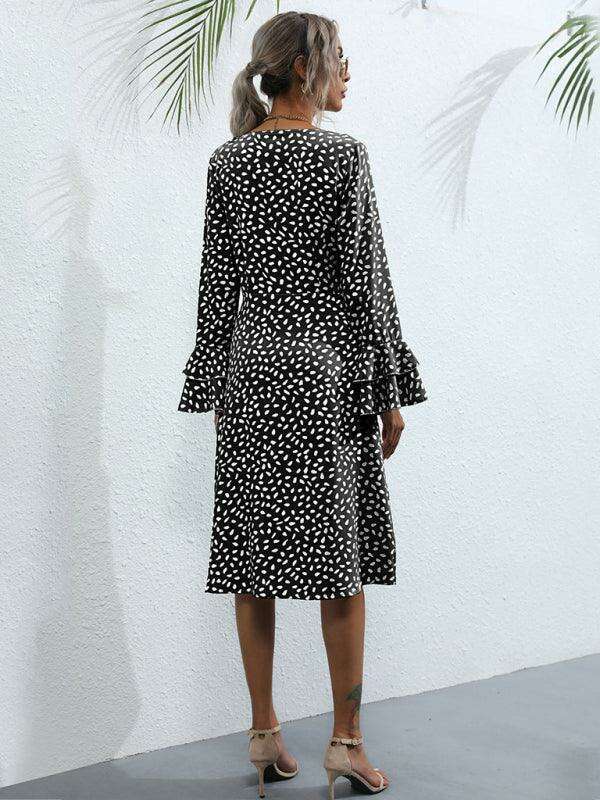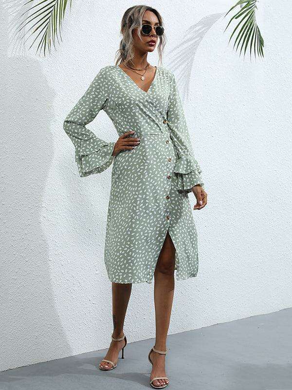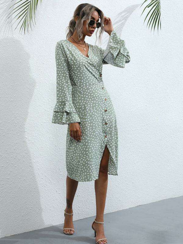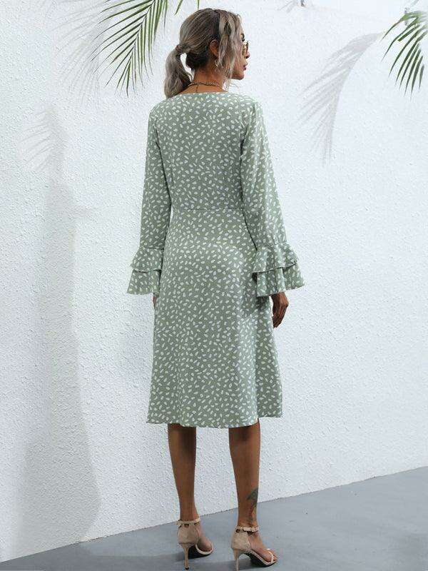 Chic Floral Print French Dress with Elegant Split Sleeves
