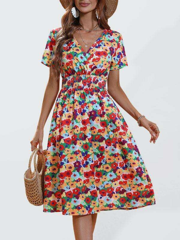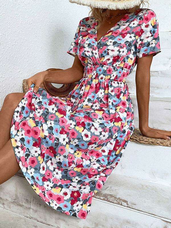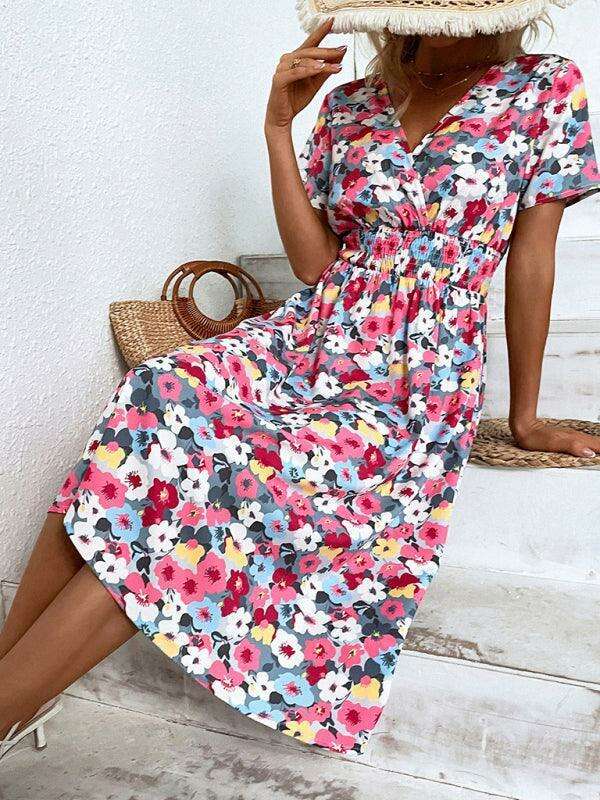 Elegant Floral V-Neck Summer Dress for Stylish Summer Getaways