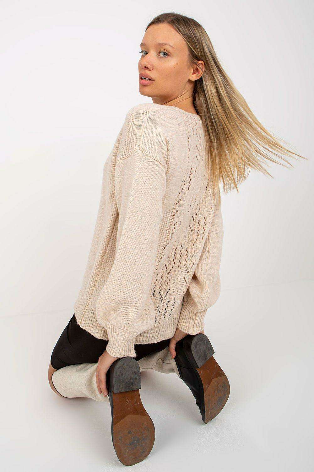 Heart Neckline Women's Sweater with Elegant Openwork Back Panel