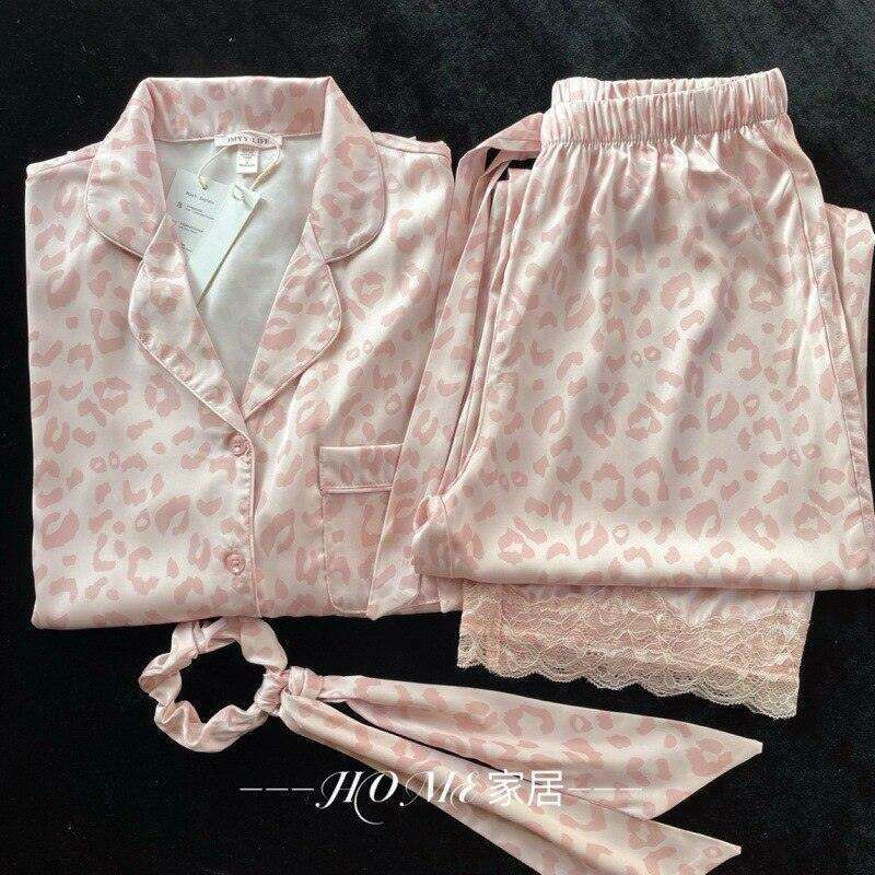 Chic Ice Silk Long Sleeve Pajama Set for Women - Spring Elegance
