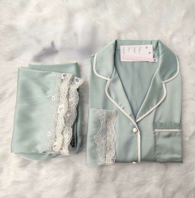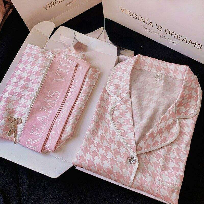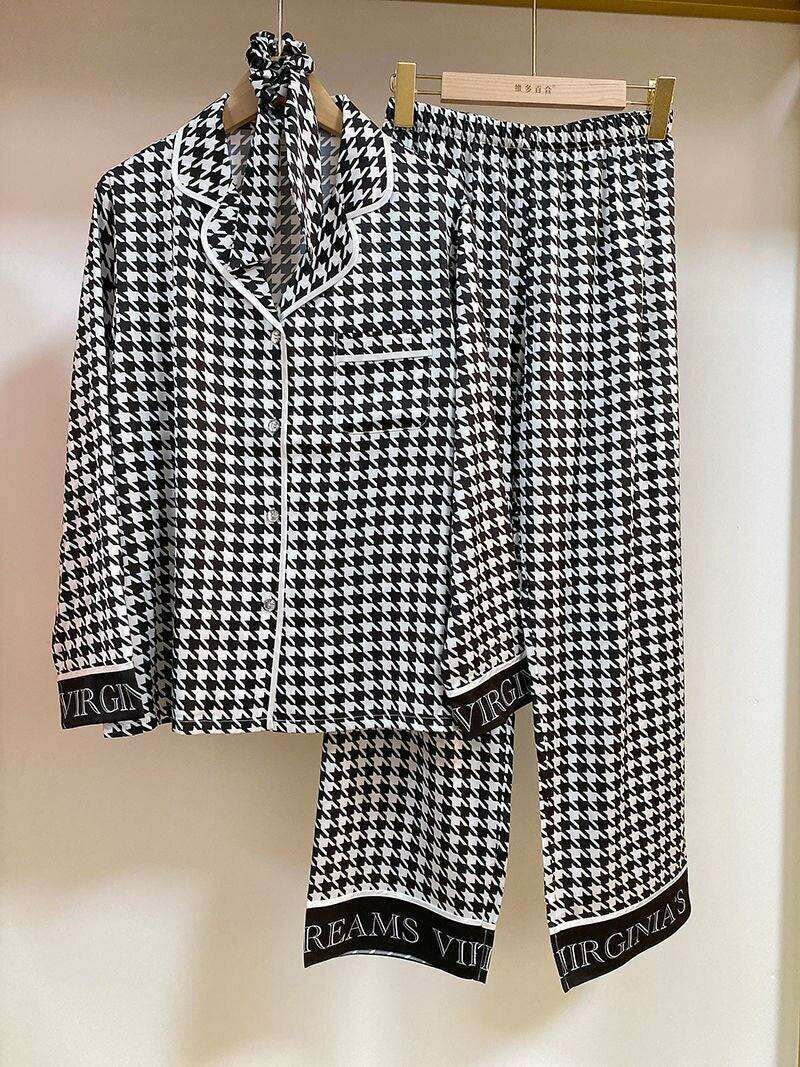 Spring Breeze Women's Long Sleeve Pajama Set with Ice Silk Pants
