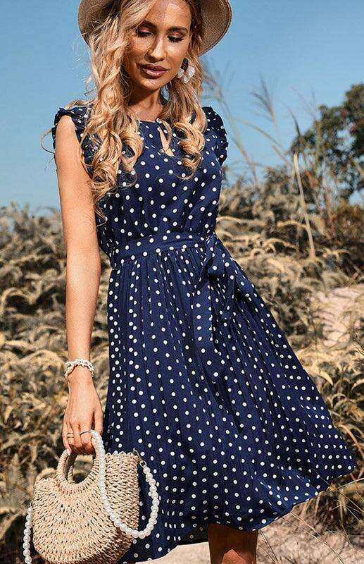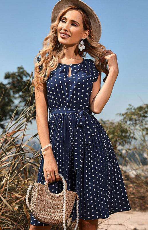 Chic Lace-Up Polka Dot Dress - Elegant Vintage Fashion Piece