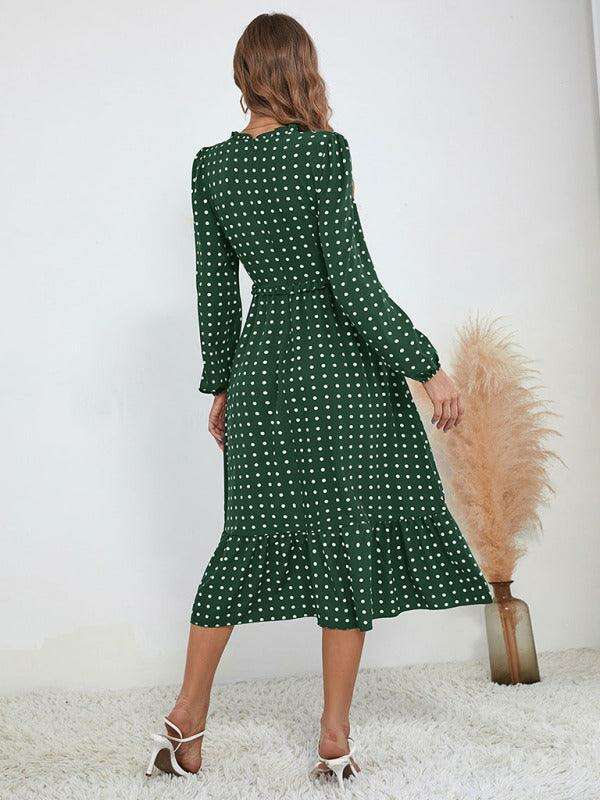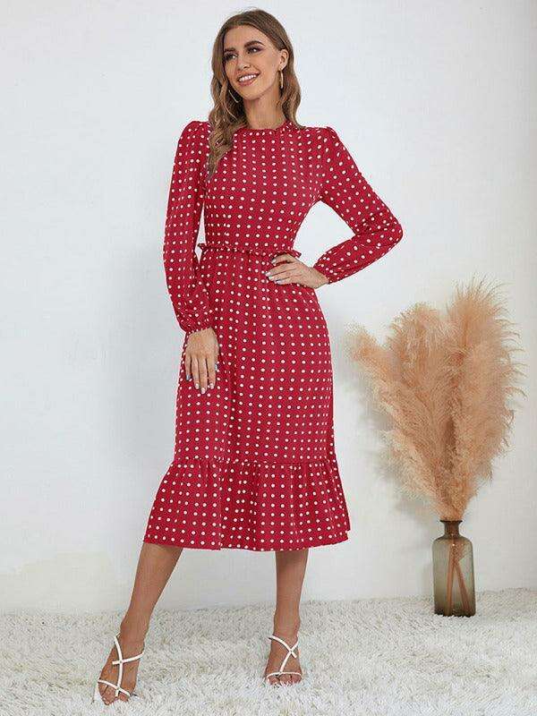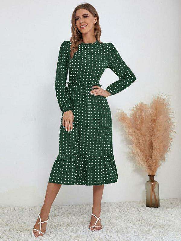 Embrace the allure of French chic and elevate your style effortlessly with this stunning dress. Whether you're enjoying a sunny autumn day or a cozy winter evening, the Chic Long Sleeve Polka Dot Dress is the perfect addition to showcase your unique sense of fashion.