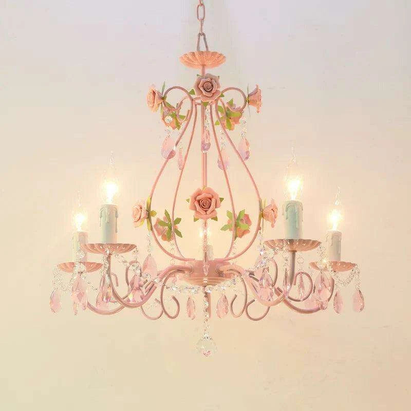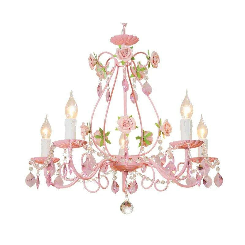 Elegant Pink Crystal Chandelier - Modern Iron Pendant Lighting for Girls' Rooms and Living Spaces with E14 LED Compatibility