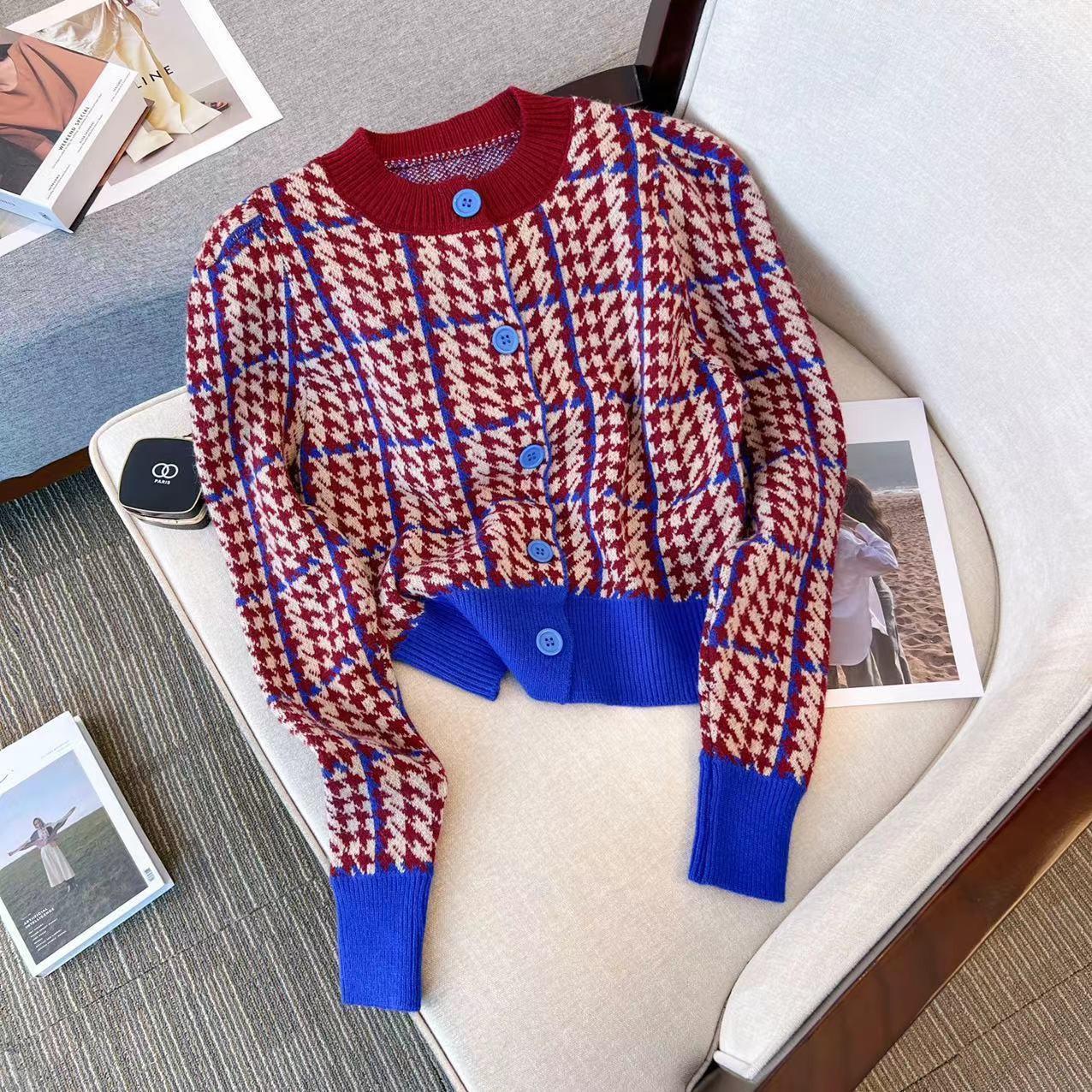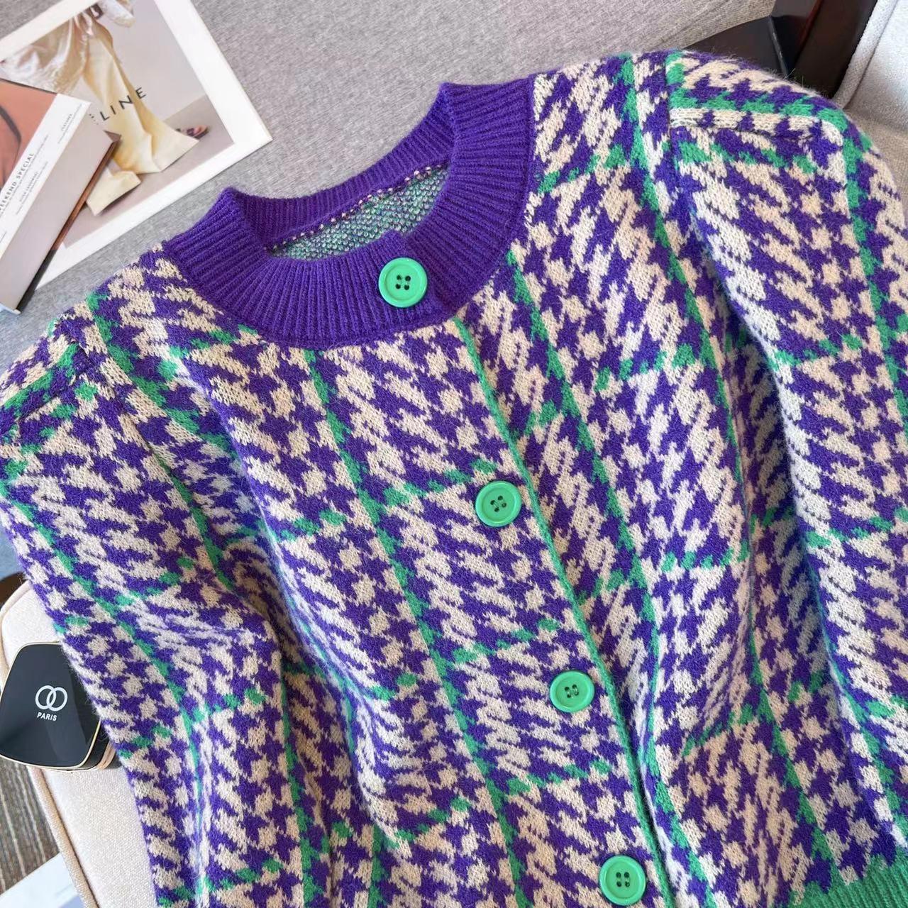 Chic Vintage Houndstooth Knit Cardigan - Timeless Style