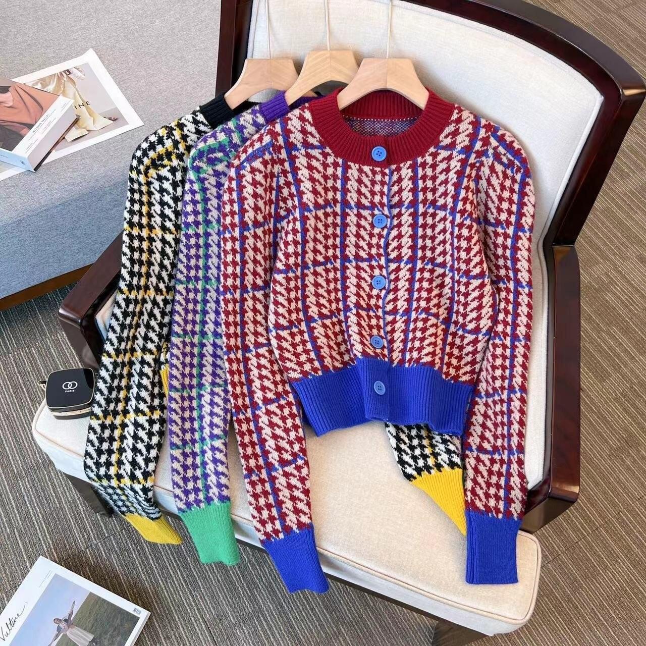 Indulge in sophistication with our Chic Vintage Houndstooth Knit Cardigan, designed for the stylish woman who appreciates timeless elegance. This classic yet chic knitwear piece seamlessly blends vintage charm with a modern twist, making it the perfect addition to any wardrobe.