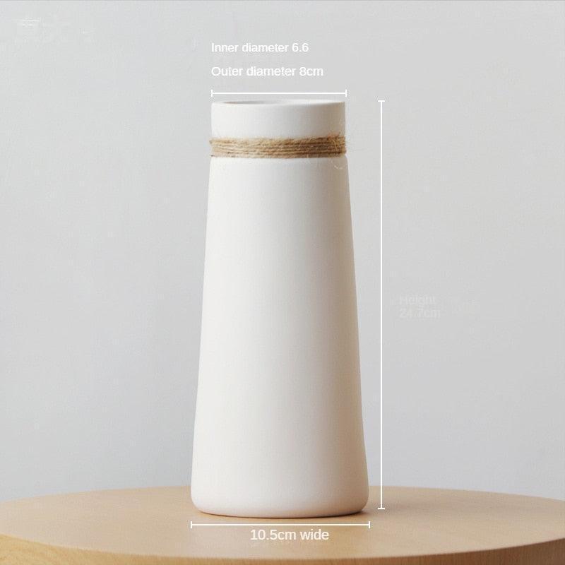 Elegant White Ceramic Vase with Trendy Hemp Rope Accent - Stylish Floral Display for Any Setting
