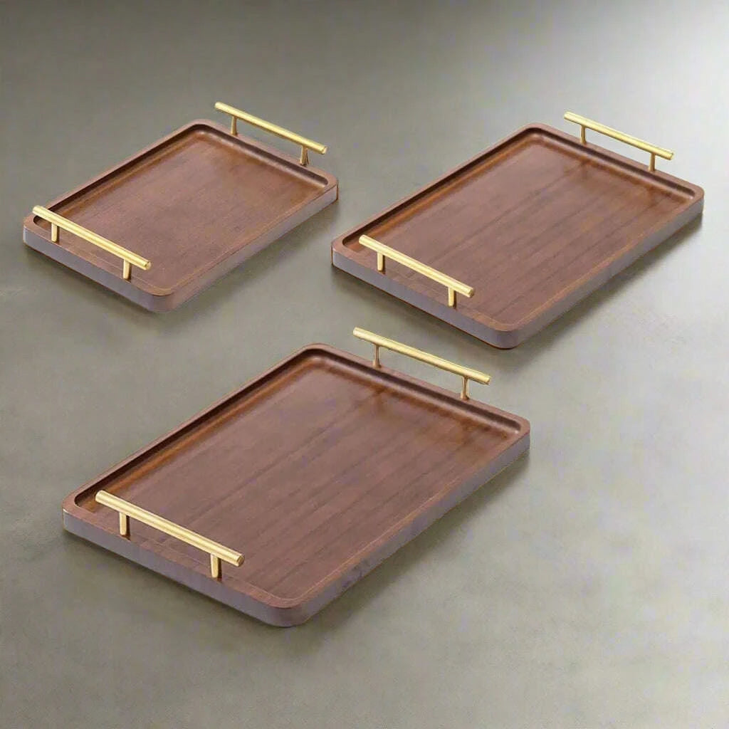 Featuring a sleek profile and sturdy metallic handles, this chic wooden serving tray is ideal for both everyday use and special occasions. Its luxurious design enhances the aesthetic appeal of your dining table or coffee table, making it perfect for: