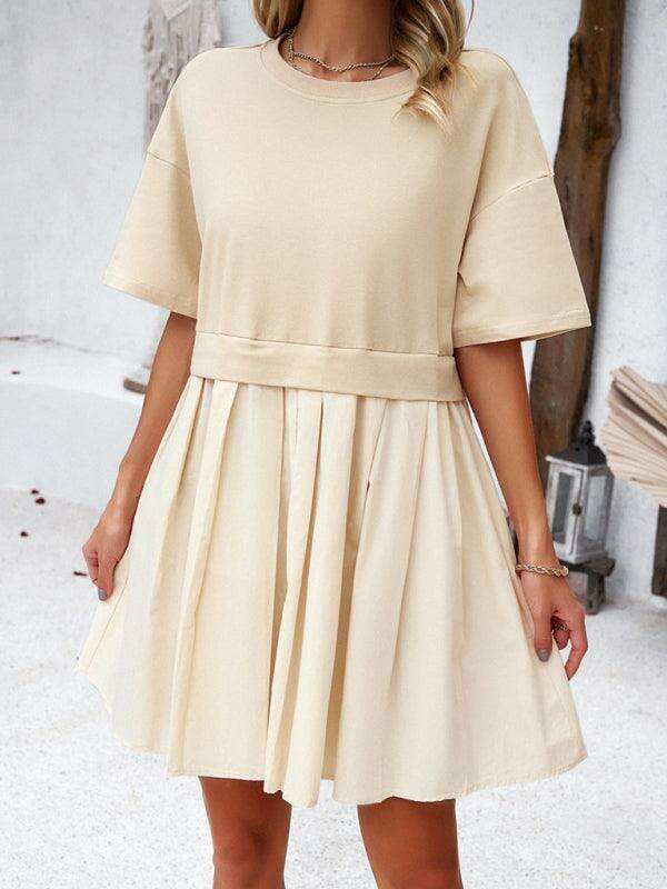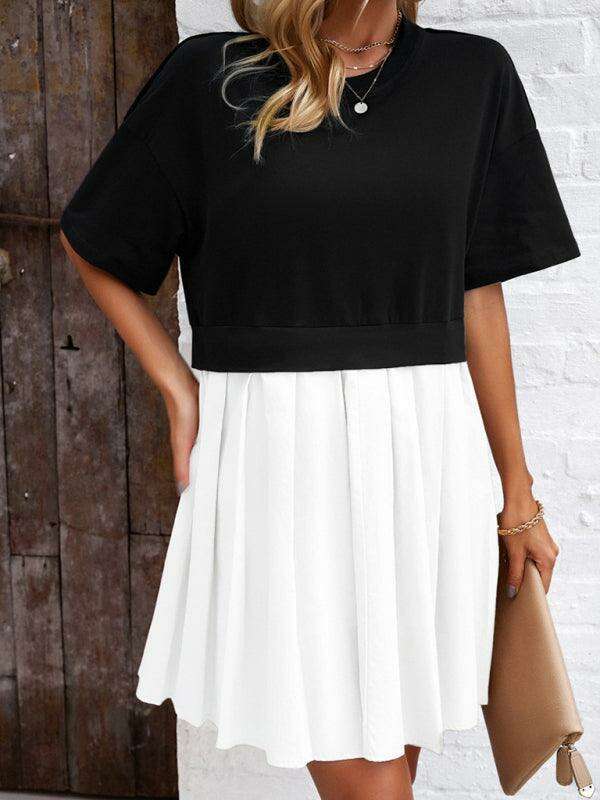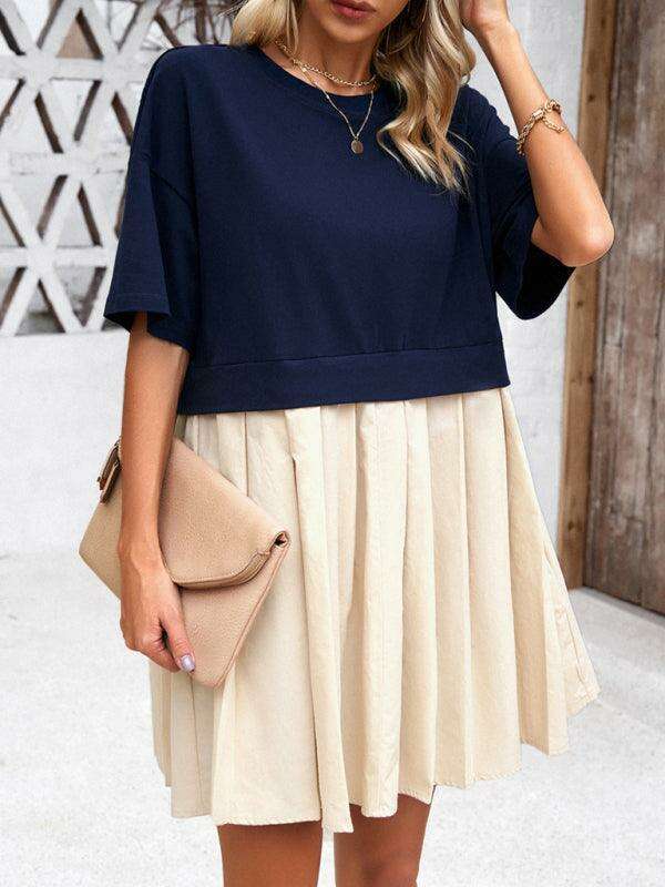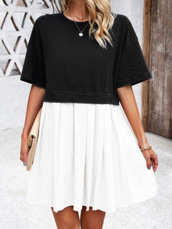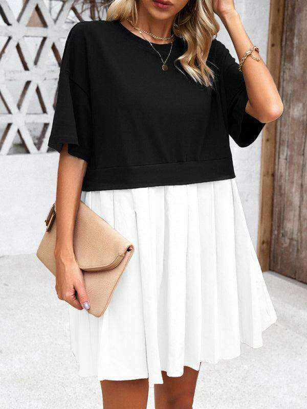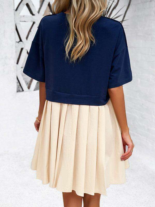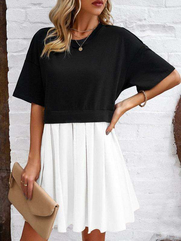 Colorful Short-Sleeve Patchwork Dress: Chic and Comfortable Women's Apparel