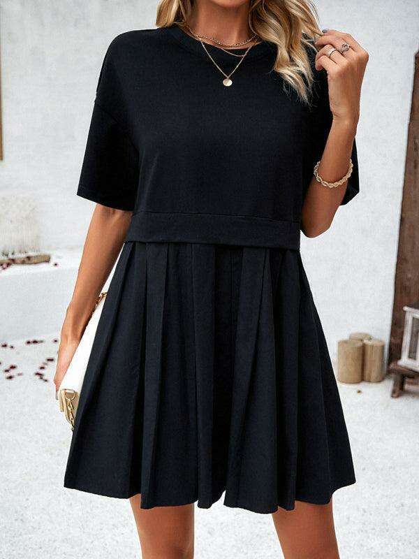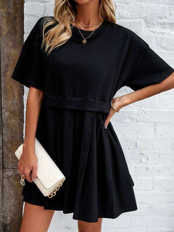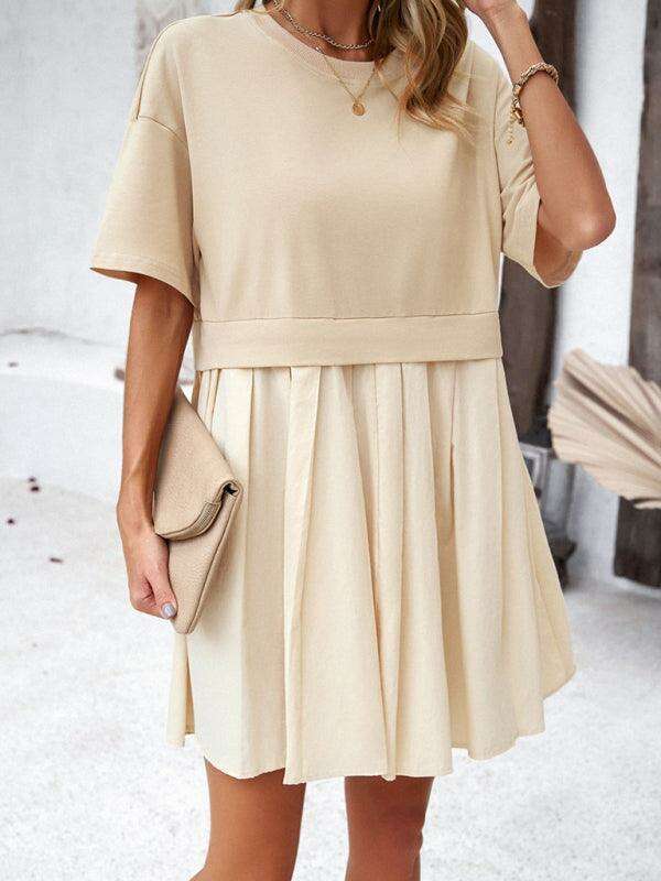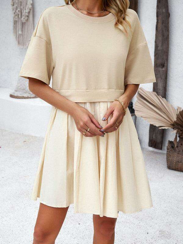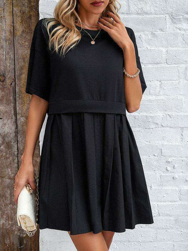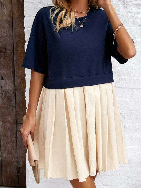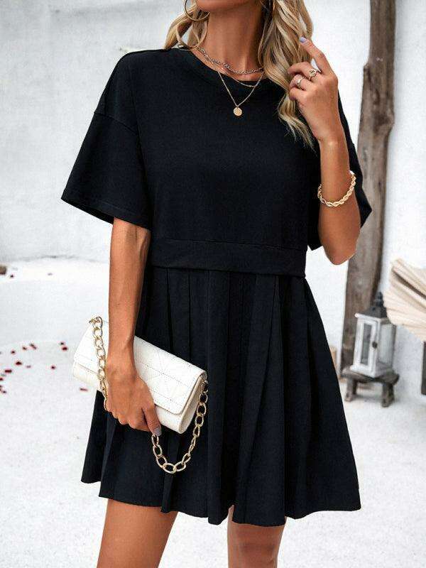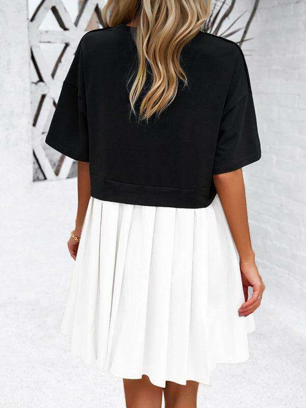 Colorful Short-Sleeve Patchwork Dress: Chic and Comfortable Women's Apparel
