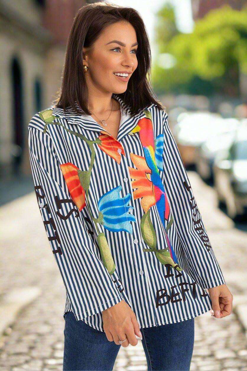 Colorful Striped Womens Shirt Italy Moda Long Sleeve