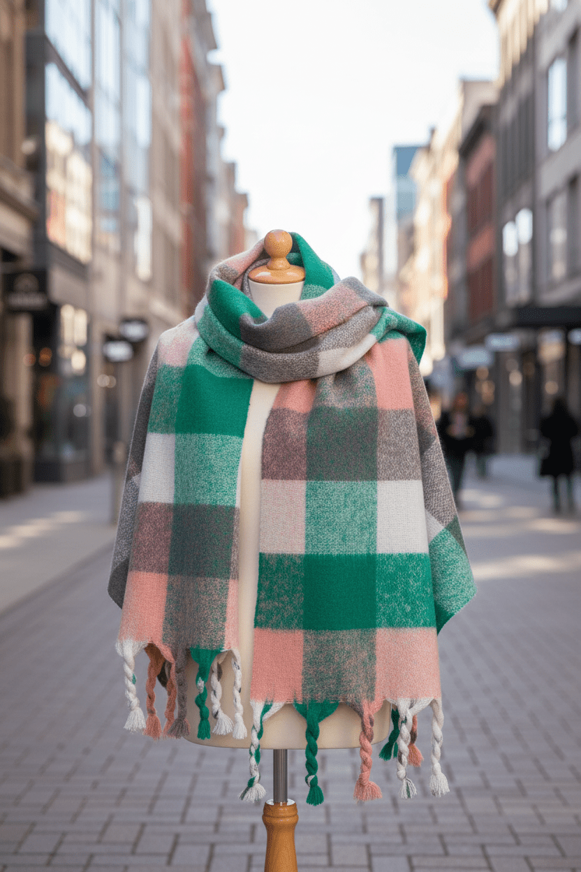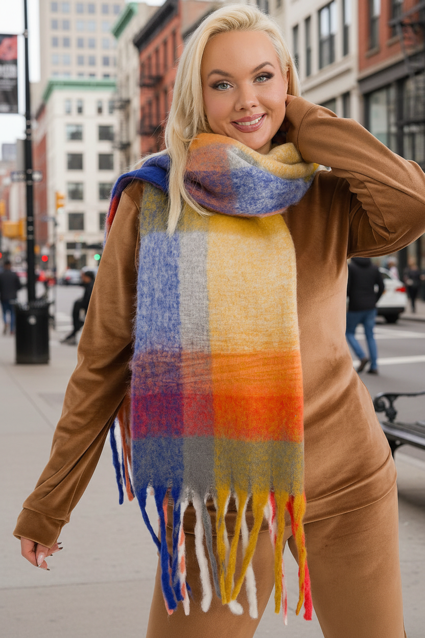 Cozy Colorful Plaid Shawl with Elegant Tassels