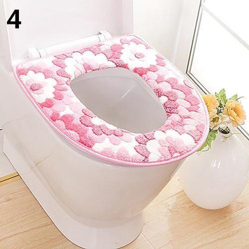 Floral Charm Coral Fleece Toilet Seat Lid Pad - Cozy and Elegant