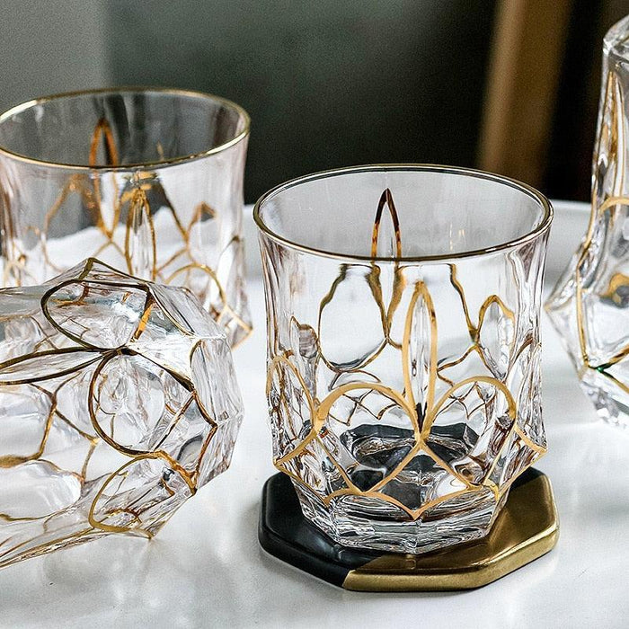 Lavish Gold Crystal Drinkware Collection - Elegant Glassware for Wine, Whiskey, Cocktails, and Beer