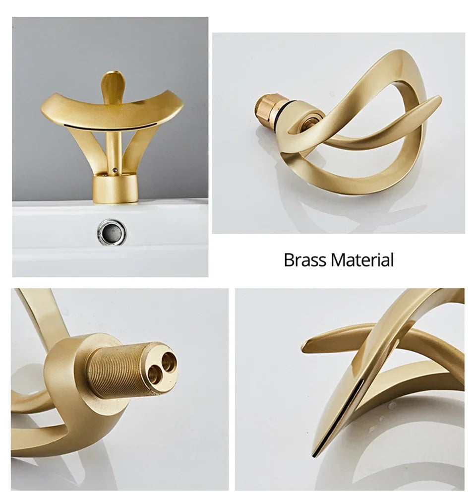 Matte Gold & Black Waterfall Faucet – Brass Sink Mixer Tap