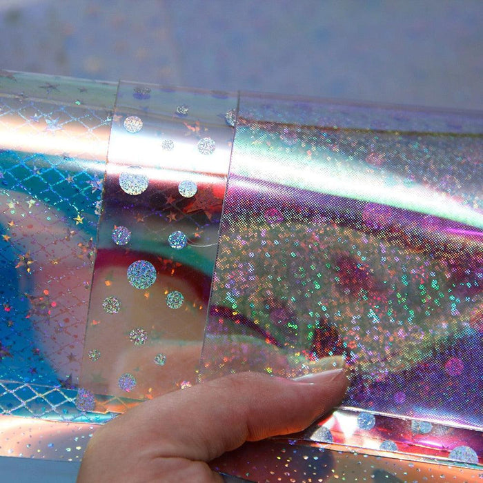 Unleash your creativity with our Iridescent Laser Transparent PVC Synthetic Leather Jelly Fabric, specifically designed for crafting unique and eye-catching items. This premium fabric is your go-to choice for a variety of DIY projects, combining durability with style to bring your imaginative ideas to life.