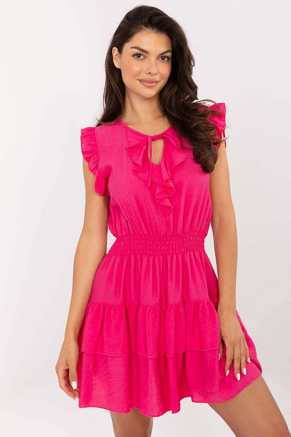Daydress model 215504 is a light, feminine mini dress designed for carefree summer days. It’s crafted from a breathable blend of viscose and nylon, ensuring comfortable wear even on hot days.