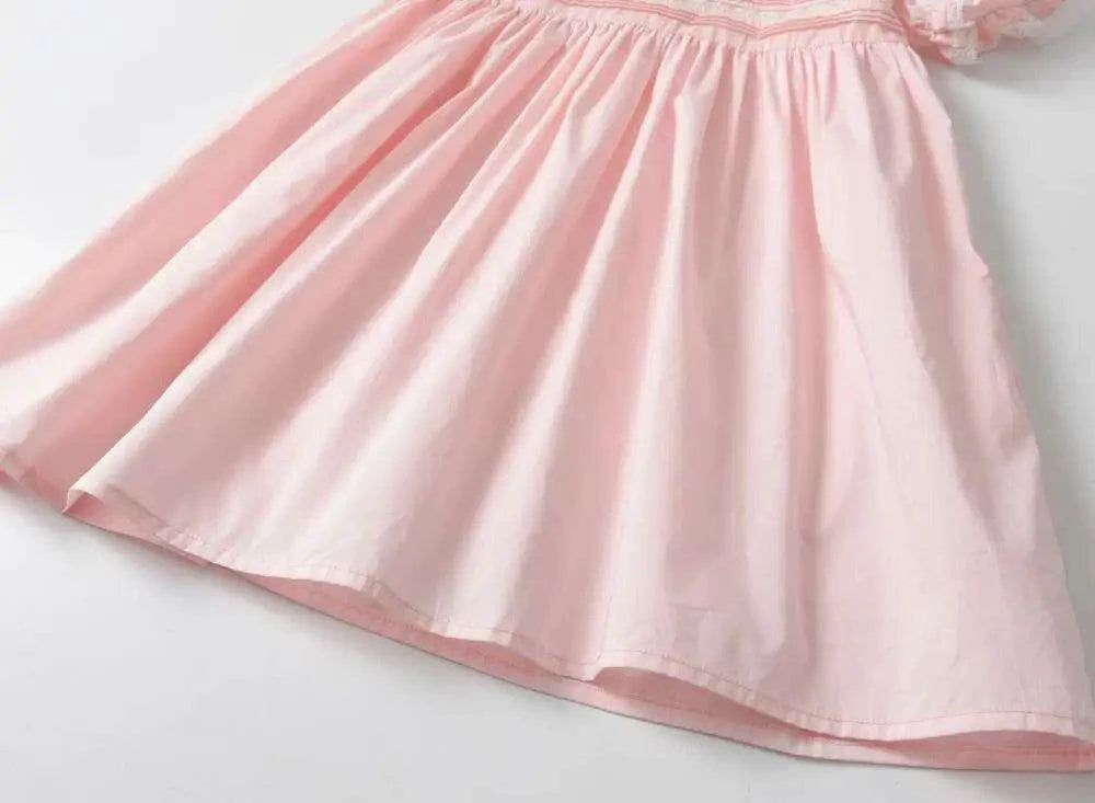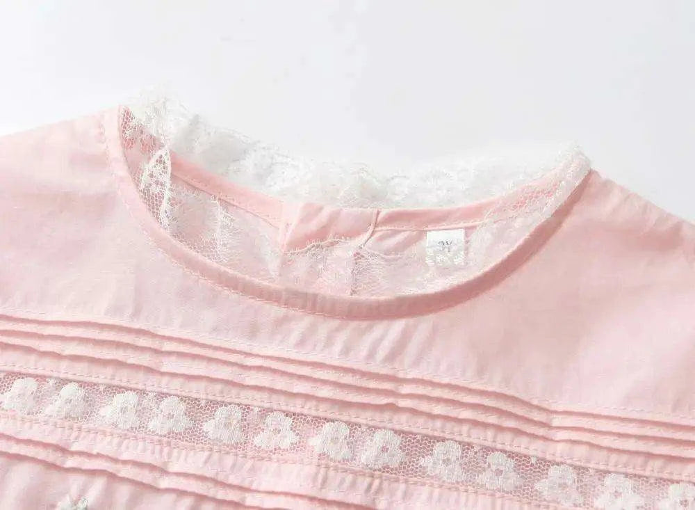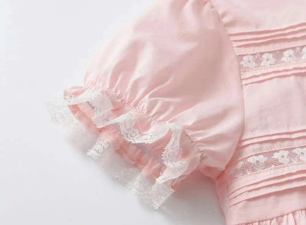 Delightful Baby Girls' Summer Lace Dress with Fun Bubble Sleeves and Exquisite Embroidery