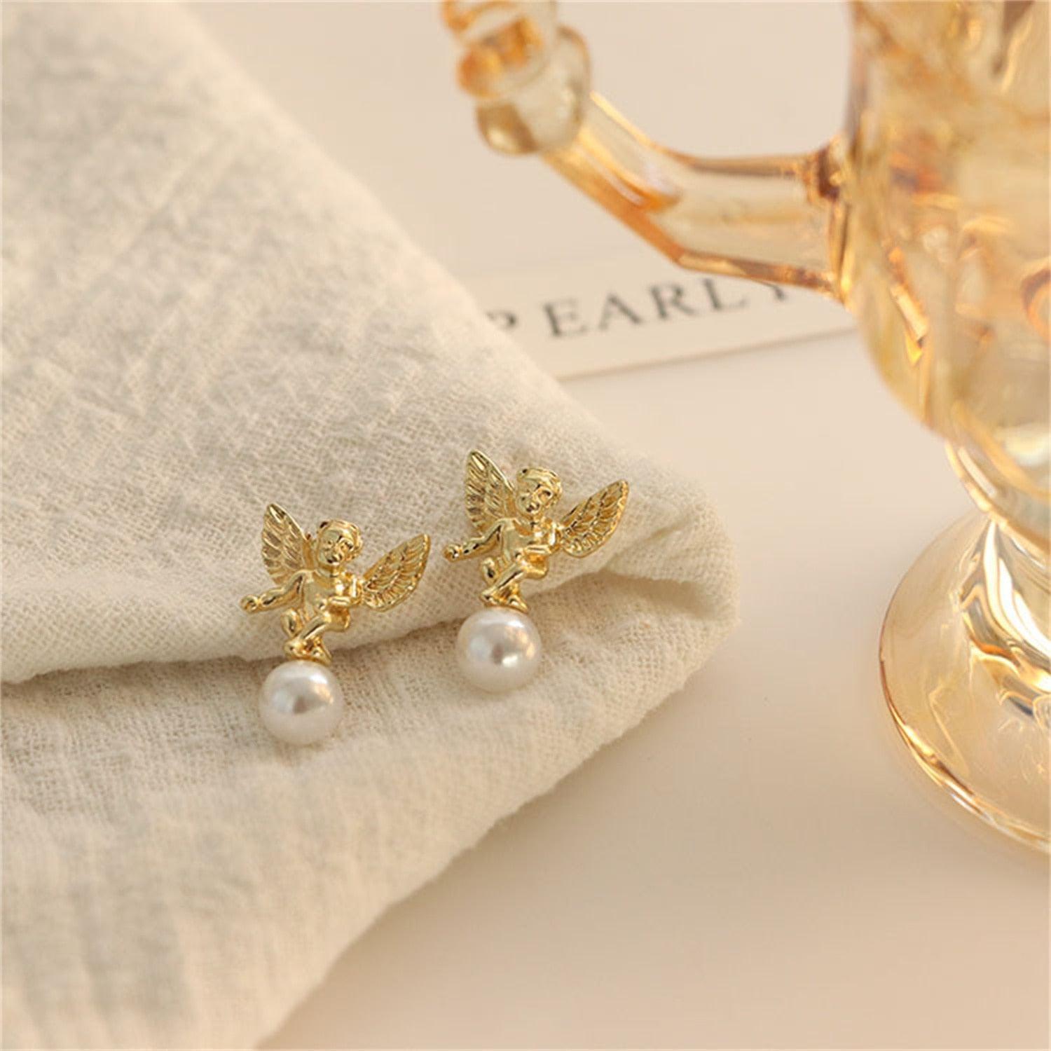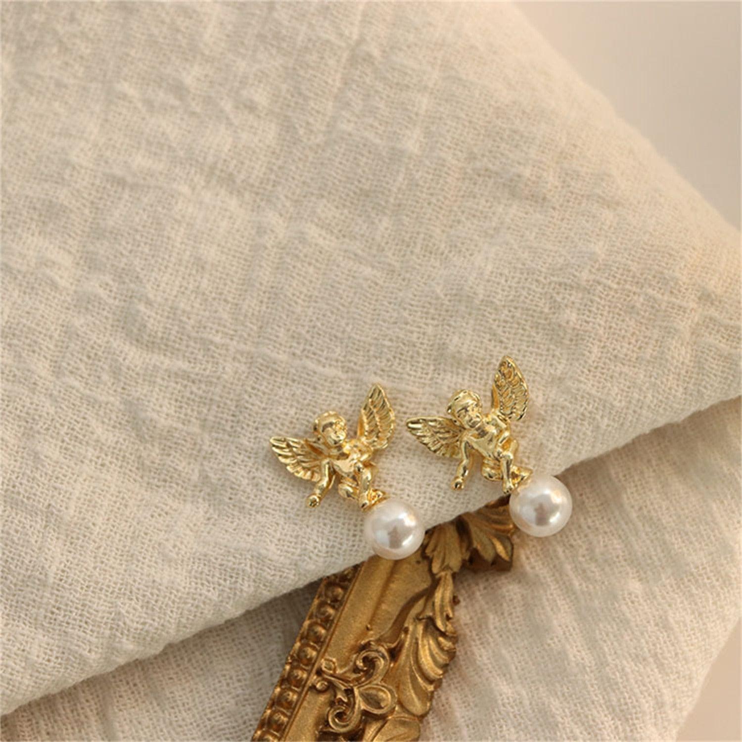 - Elegant Retro Design: Adorn your ears with adorable cupid angel studs that shine in a dazzling gold hue, perfect for enhancing your style.